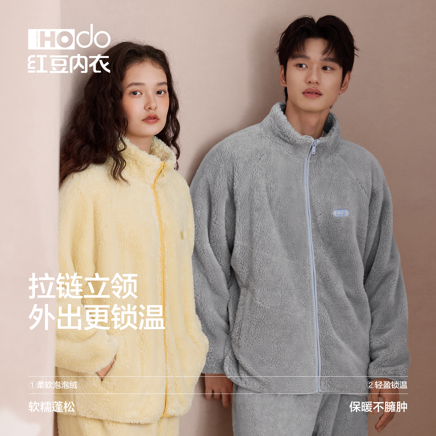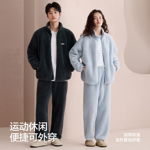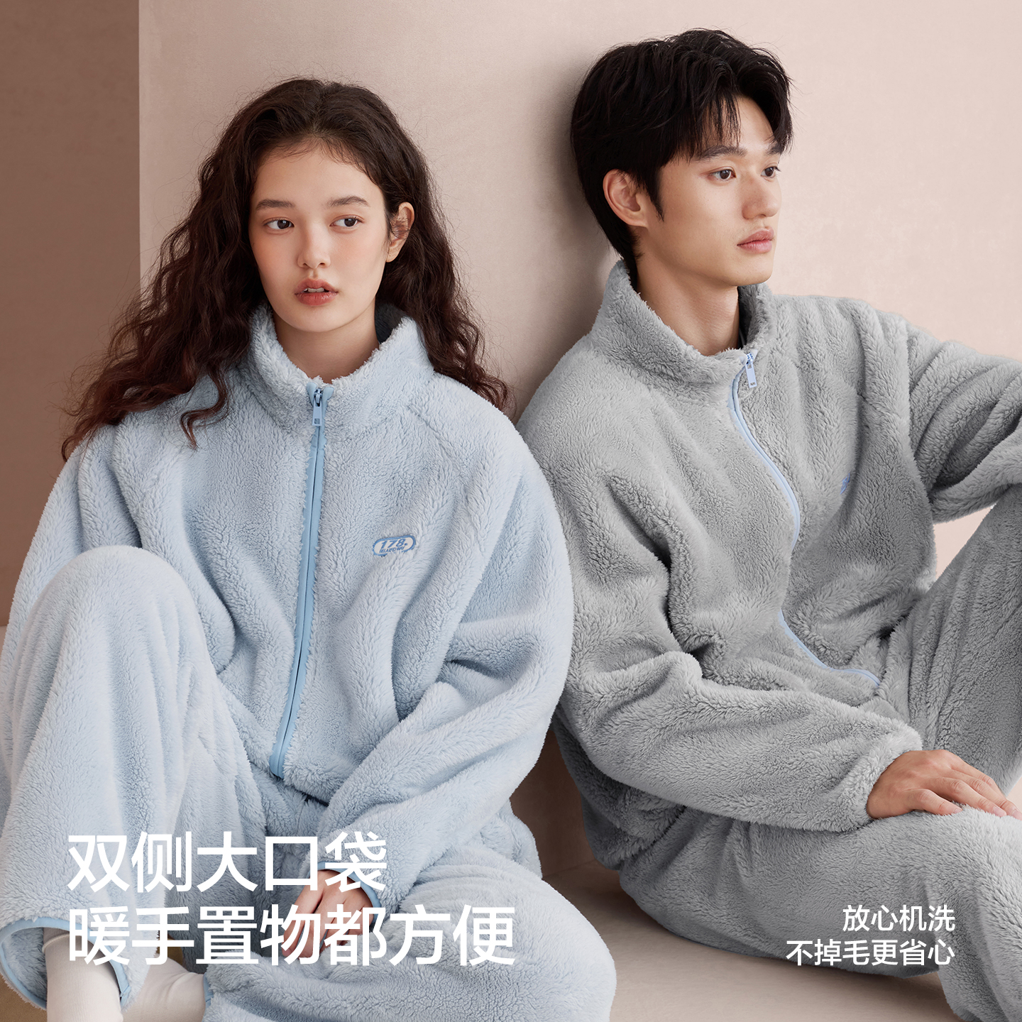 保暖加绒圆领男家居服套装 清仓睡衣女冬IP款 果壳反季 Gukoo
