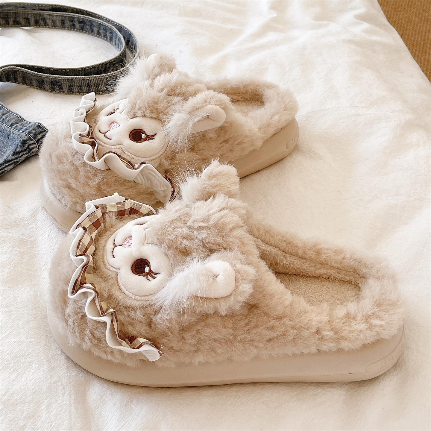 家居室内月子毛毛绒棉鞋 红豆棉拖鞋 包跟保暖2025新款 冬季 女士 女款
