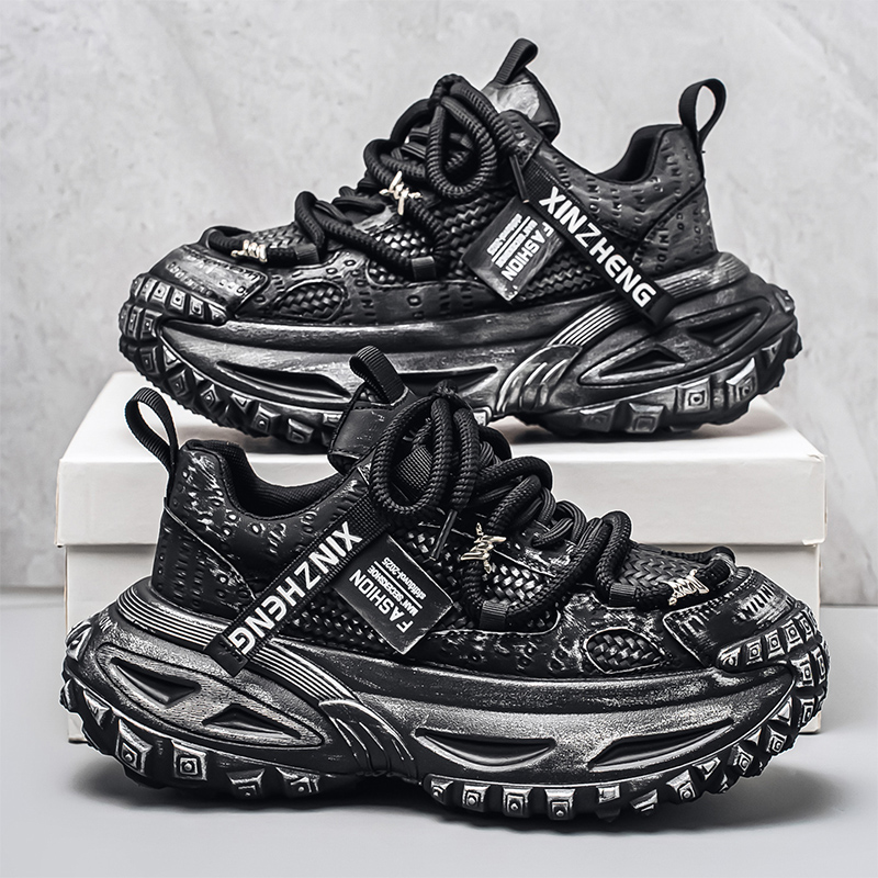 莆田男鞋 秋冬透气网面防臭复古百搭运动休闲跑步厚底增高老爹潮鞋
