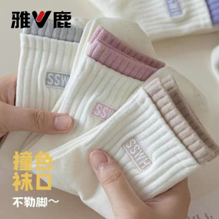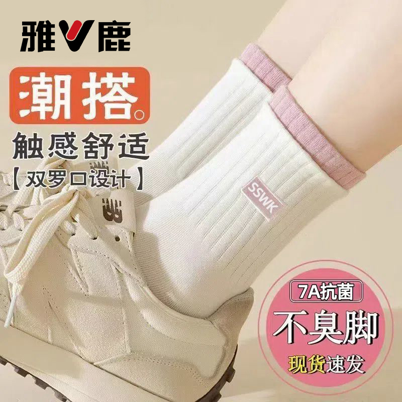 雅鹿袜子女款 中筒袜女士新疆棉长袜春秋运动吸汗防臭抗菌袜 秋冬季