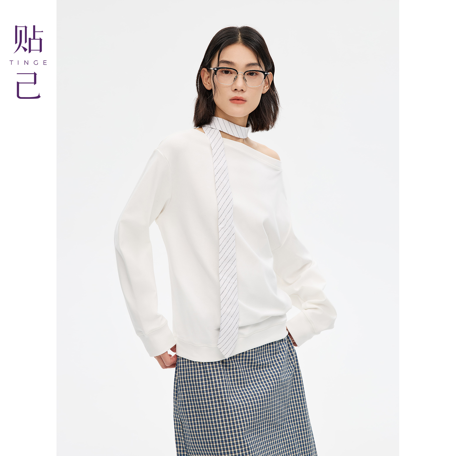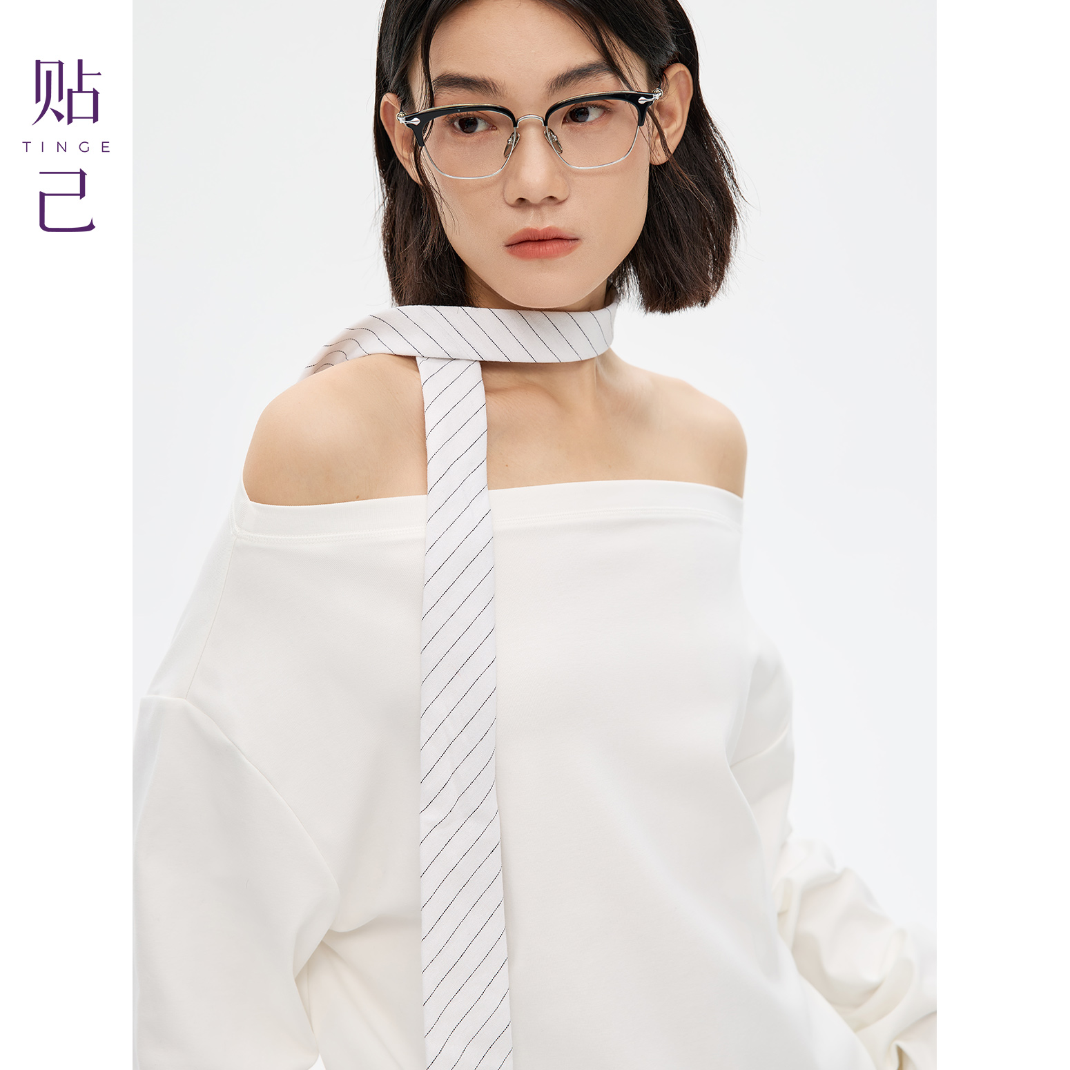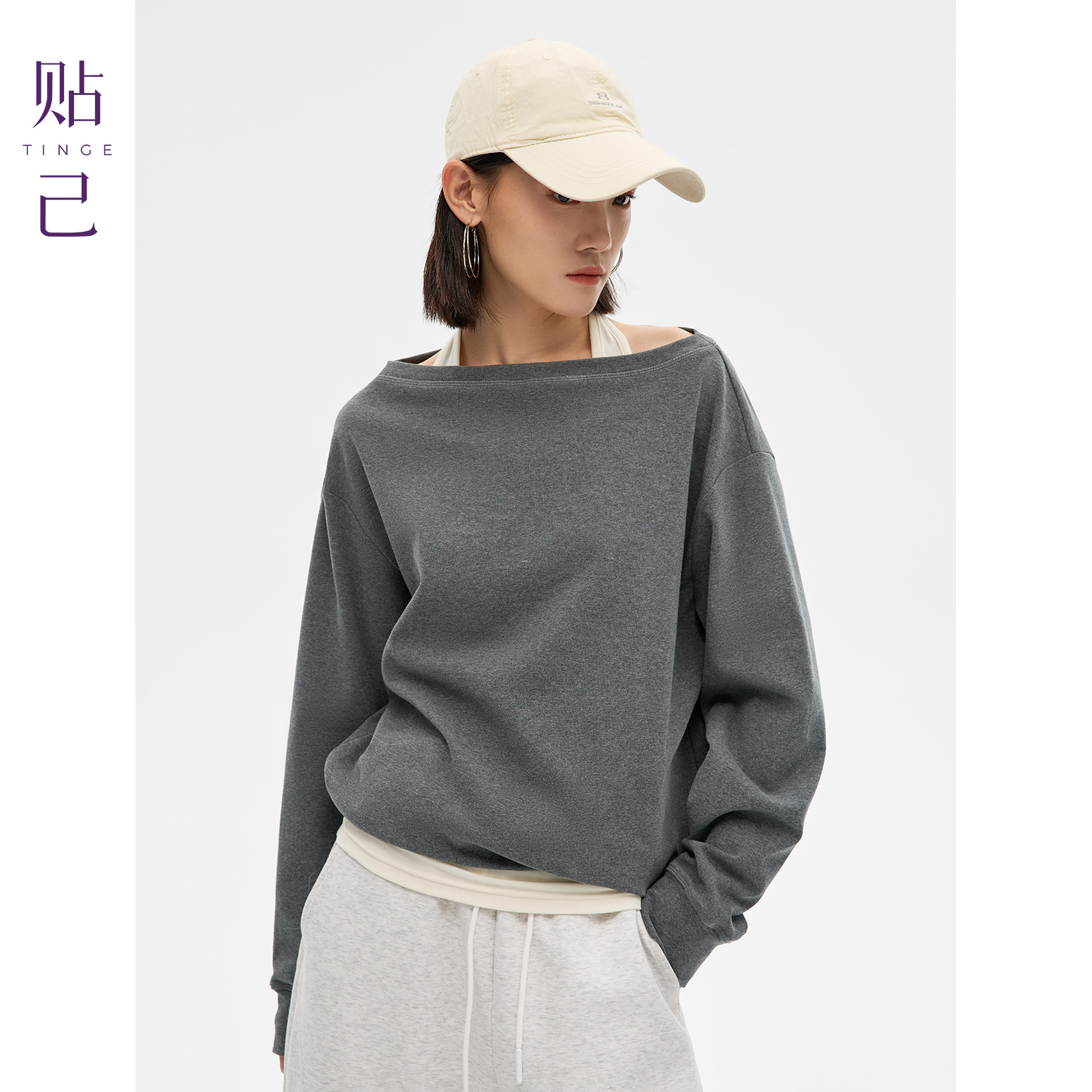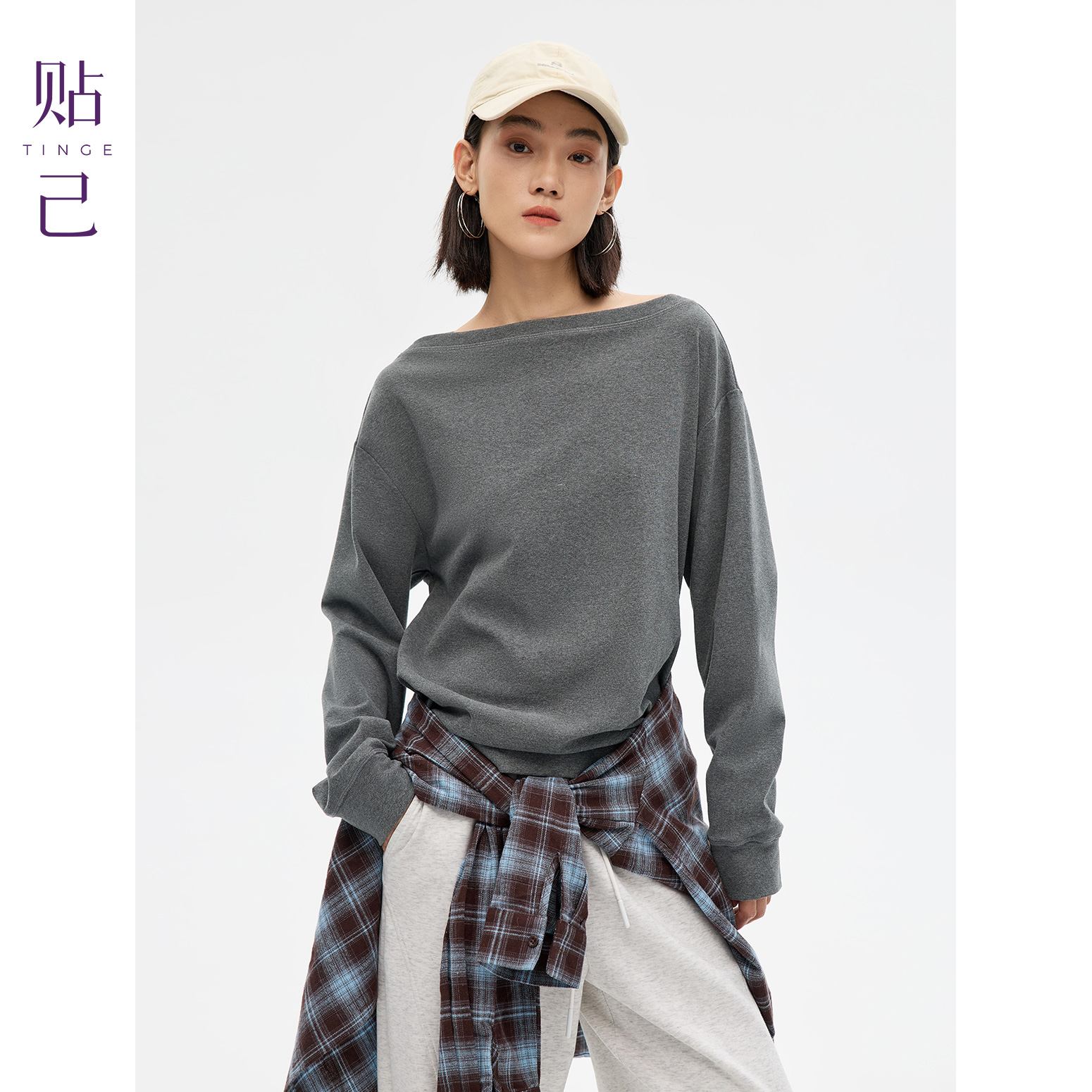 TINGE贴己慵懒斜肩船领休闲宽松卫衣女25年秋季 高级感上衣 新款