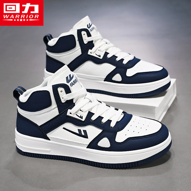运动鞋 高帮休闲鞋 秋冬新款 子学生厚底男鞋 皮面鞋 征服鸿星尔克板鞋