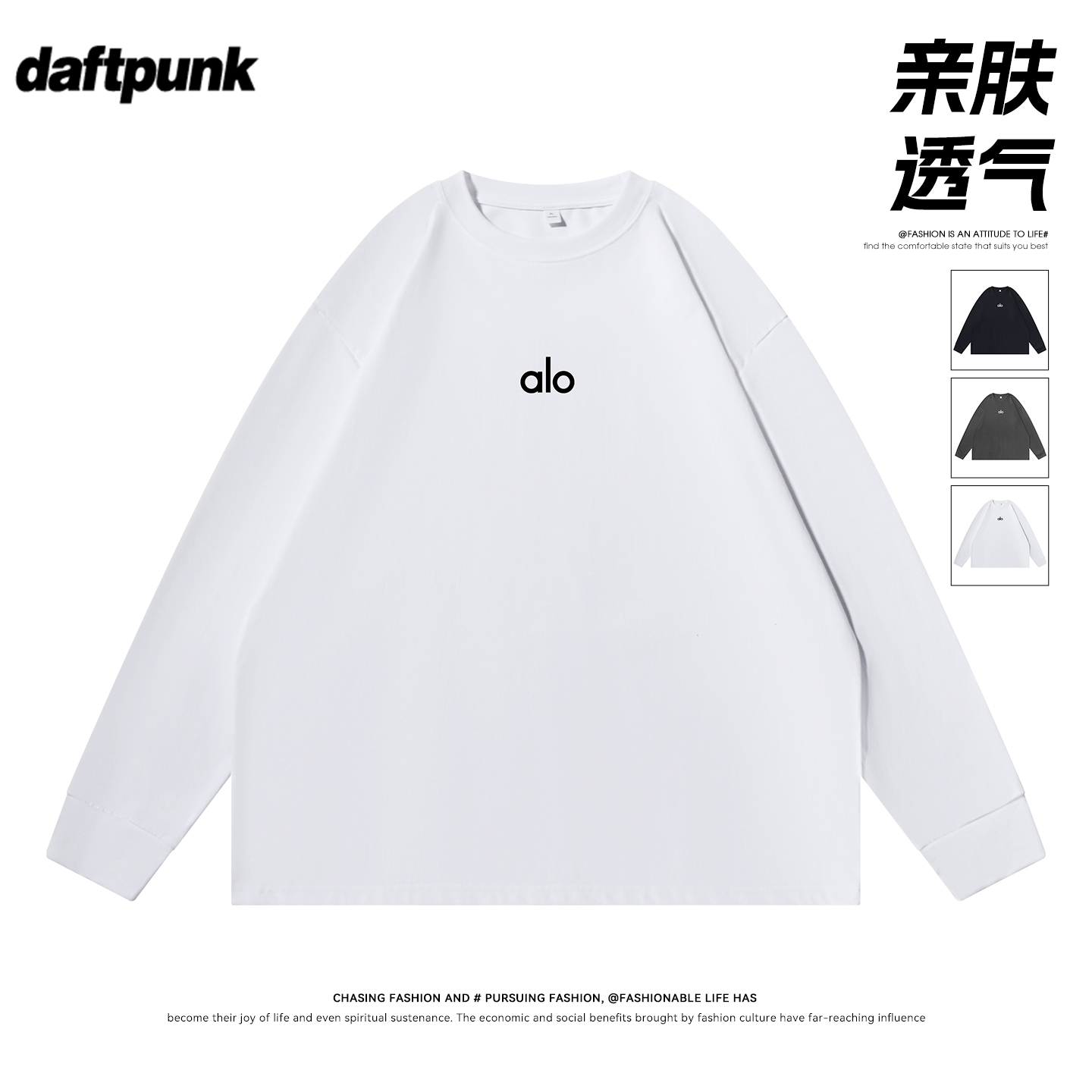 t恤男索罗娜宽松百搭上衣 休闲alo字母硅胶印花长袖 2025秋新款 美式