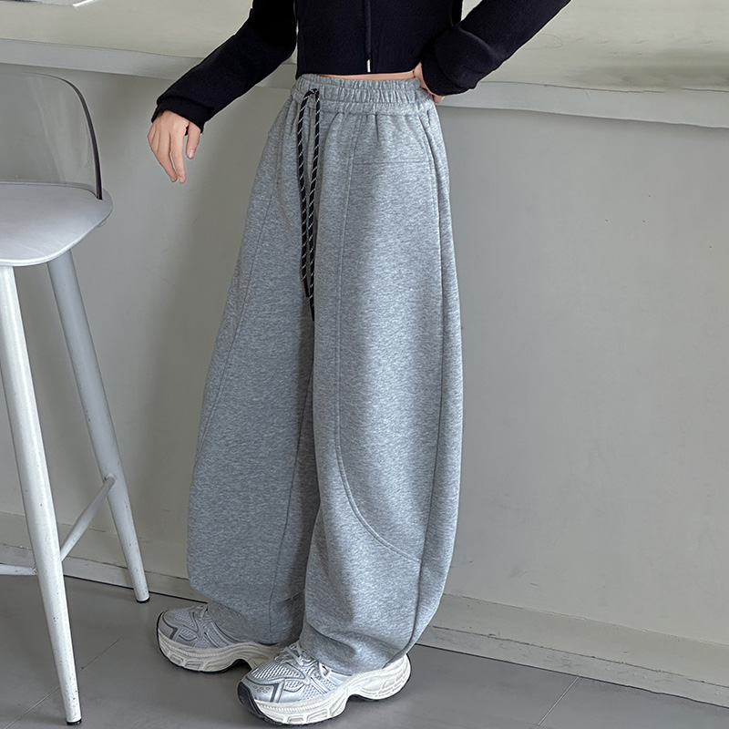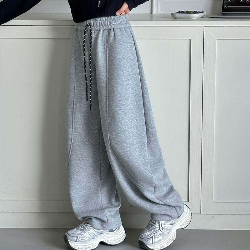 高腰宽松垂感休闲糯米显瘦阔腿裤 子女秋冬2025新款 直筒运动裤 窄版