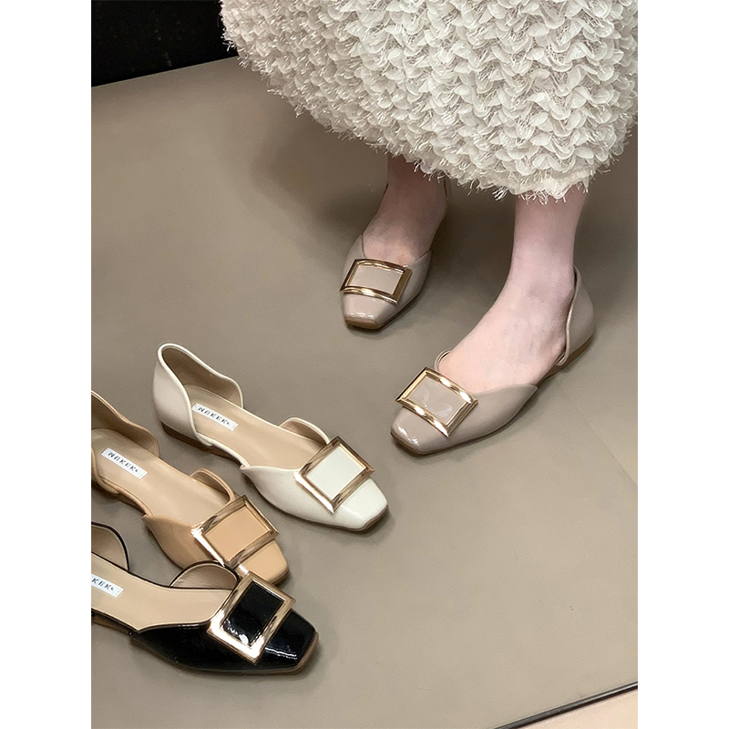 单鞋 方扣中空平底鞋 法式 子一脚蹬玛丽珍鞋 内增高 女浅口包头凉鞋