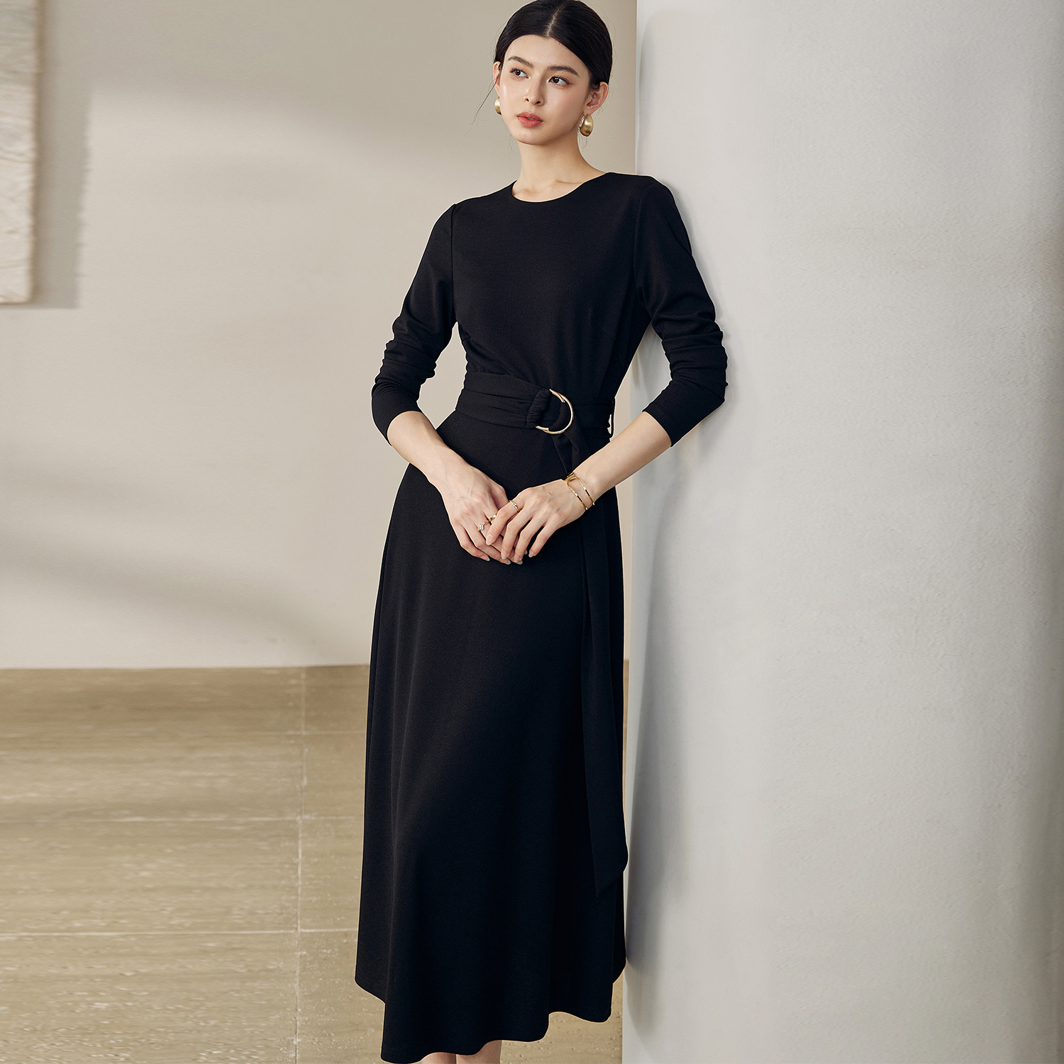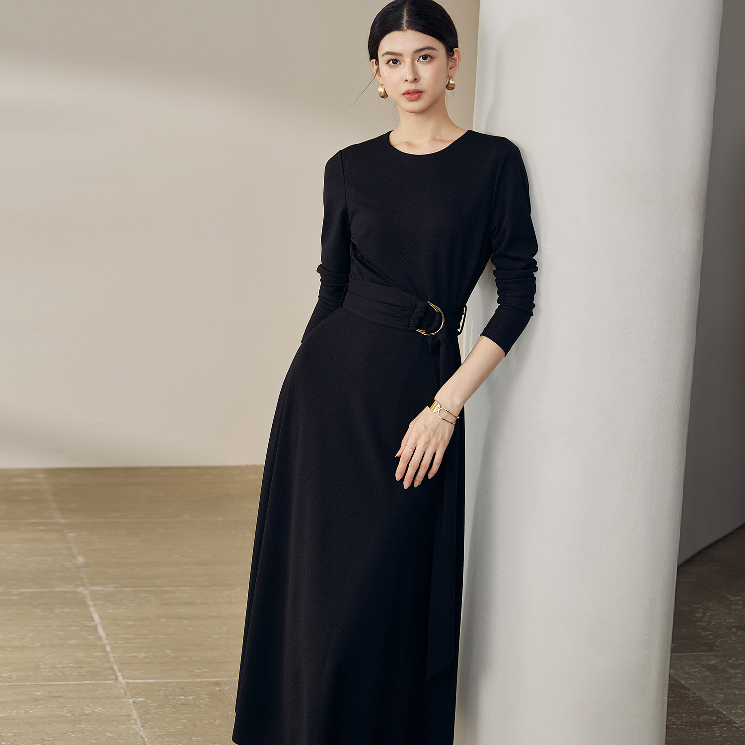 好看鱼尾裙修身 DPLAY2025年秋季 连衣裙法式 气质黑色长袖 长裙 新款