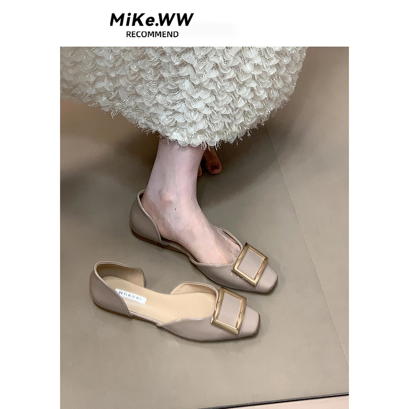 绝美气质通勤平底鞋 小个子内增高裸色方扣浅口单鞋 女2025春夏新款