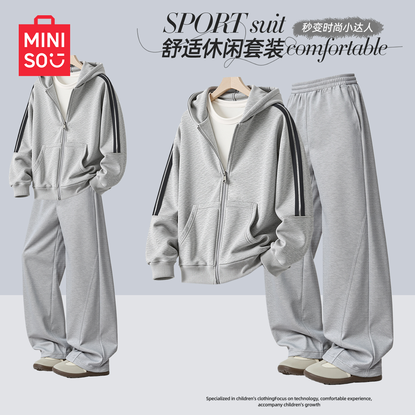 时尚 2025新款 休闲大童连帽外套儿童衣服 运动套装 名创优品男童秋装