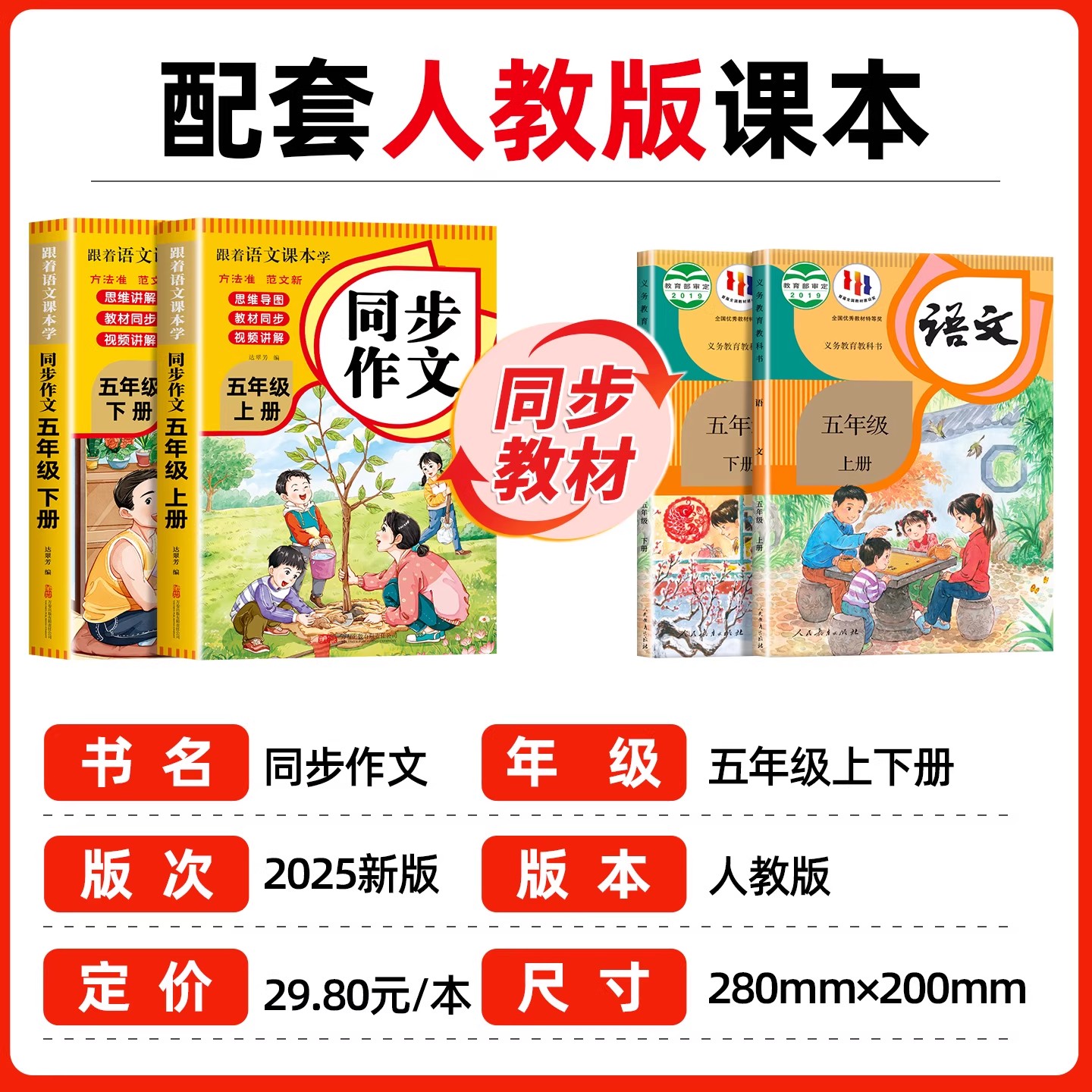 五年级上册同步作文人教版 3年级下册小学作文书小学生黄冈优秀作文大全语文写作素材知识积累学写范文写作提升专项训练 2025新版
