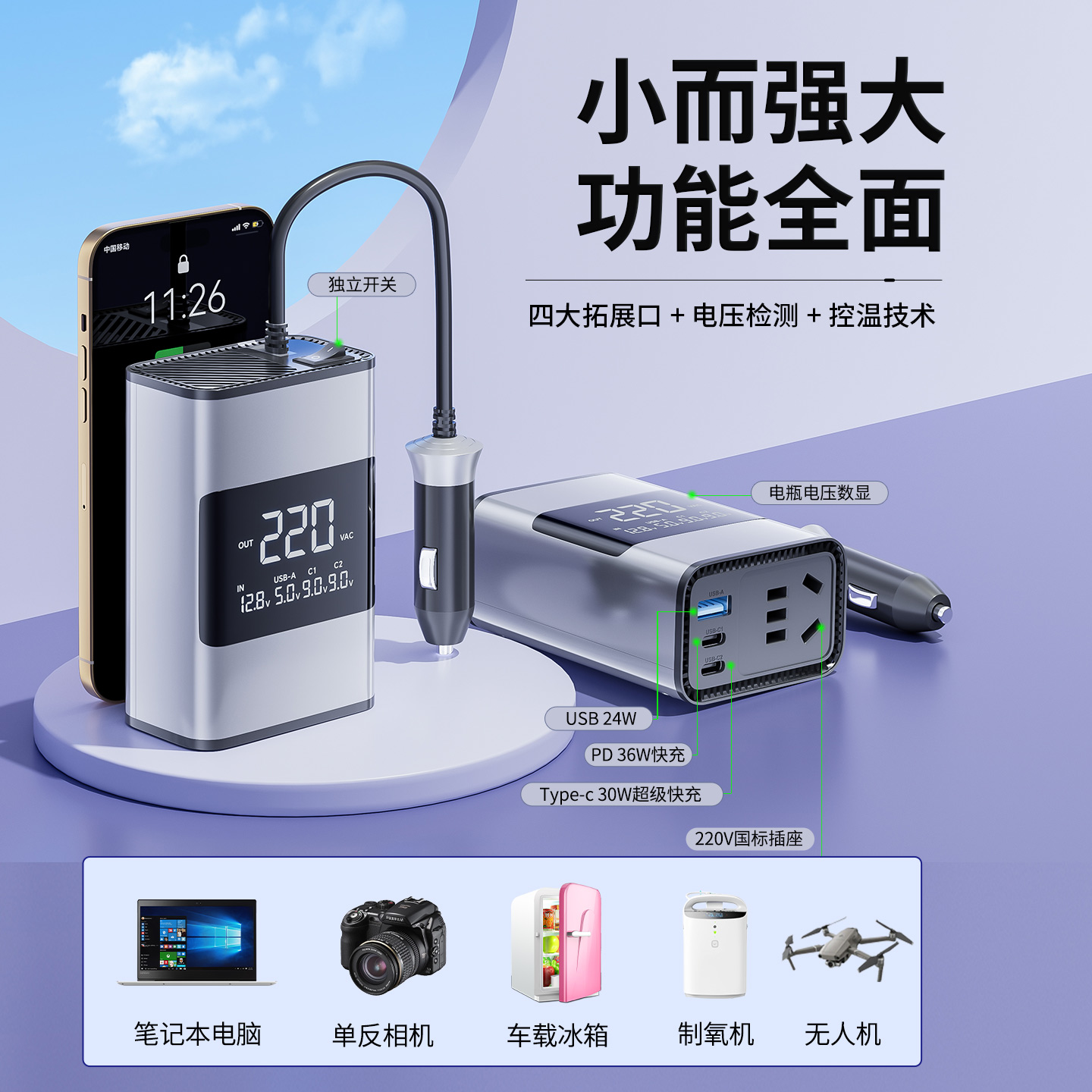 迷你2025新型车载逆变器12V 24V转220v逆变转换器电源充电器插头