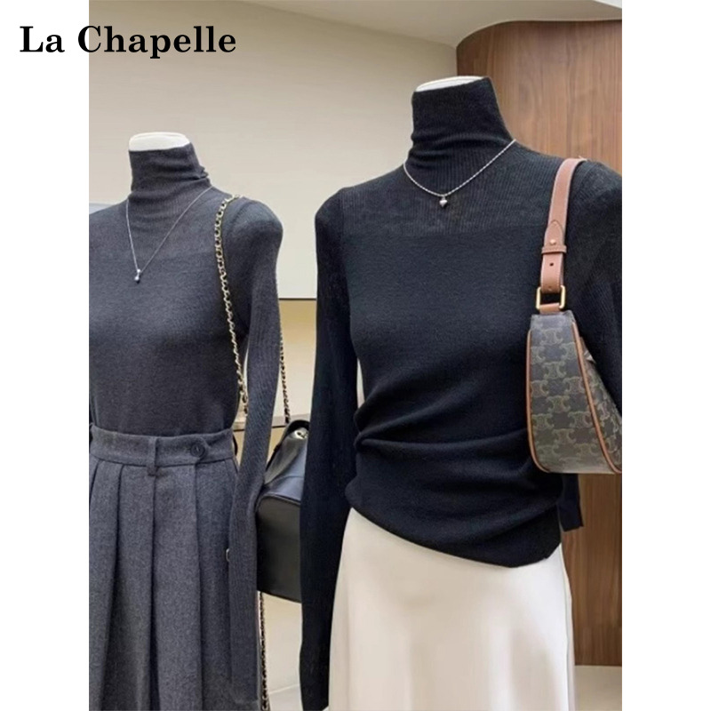 打底衫 修身 显瘦内搭上衣 T恤女秋季 拉夏贝尔黑色网纱高领针织长袖