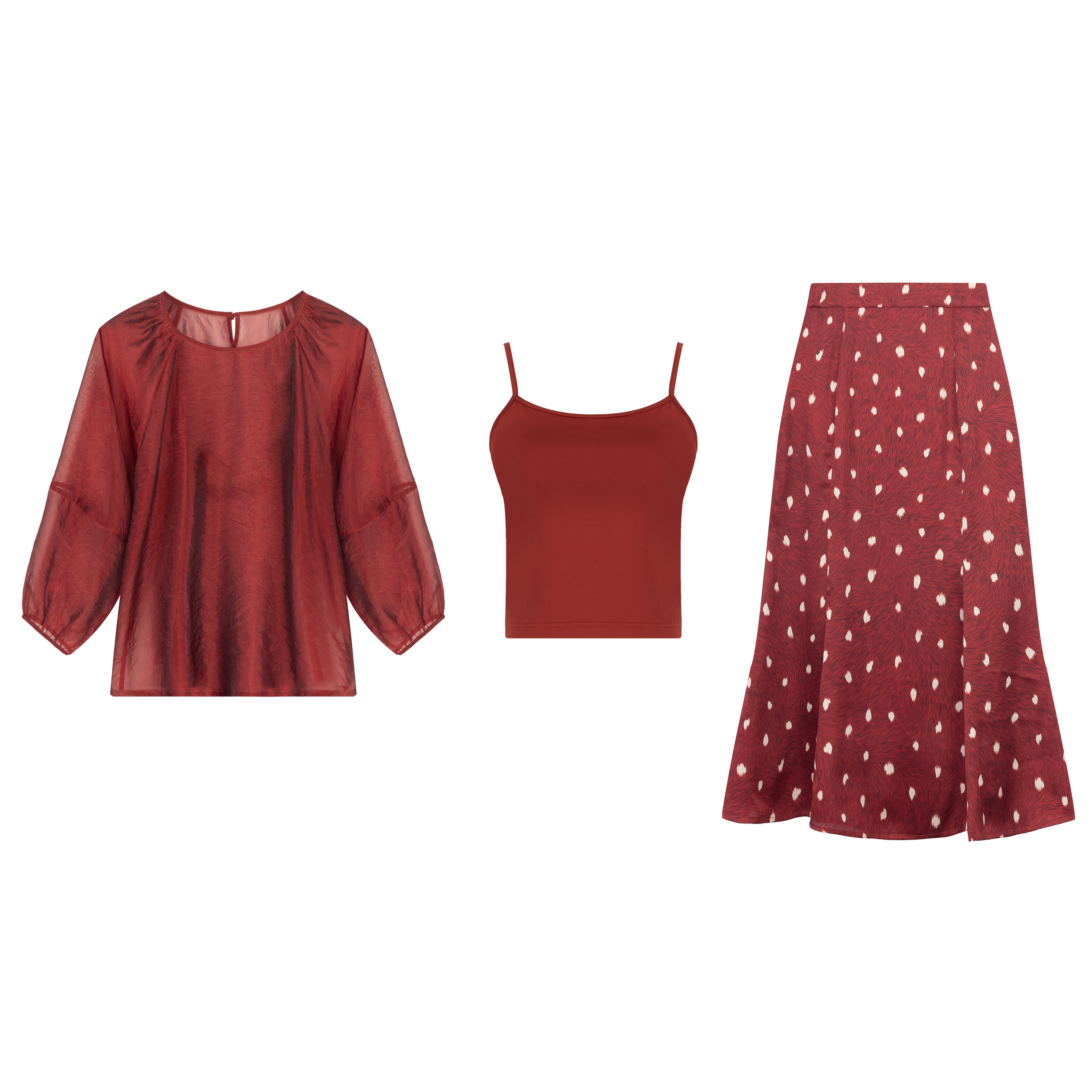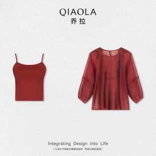 复古百搭红色圆领上衣半身裙套装 乔拉 新款 2025秋季 女 始见山樱