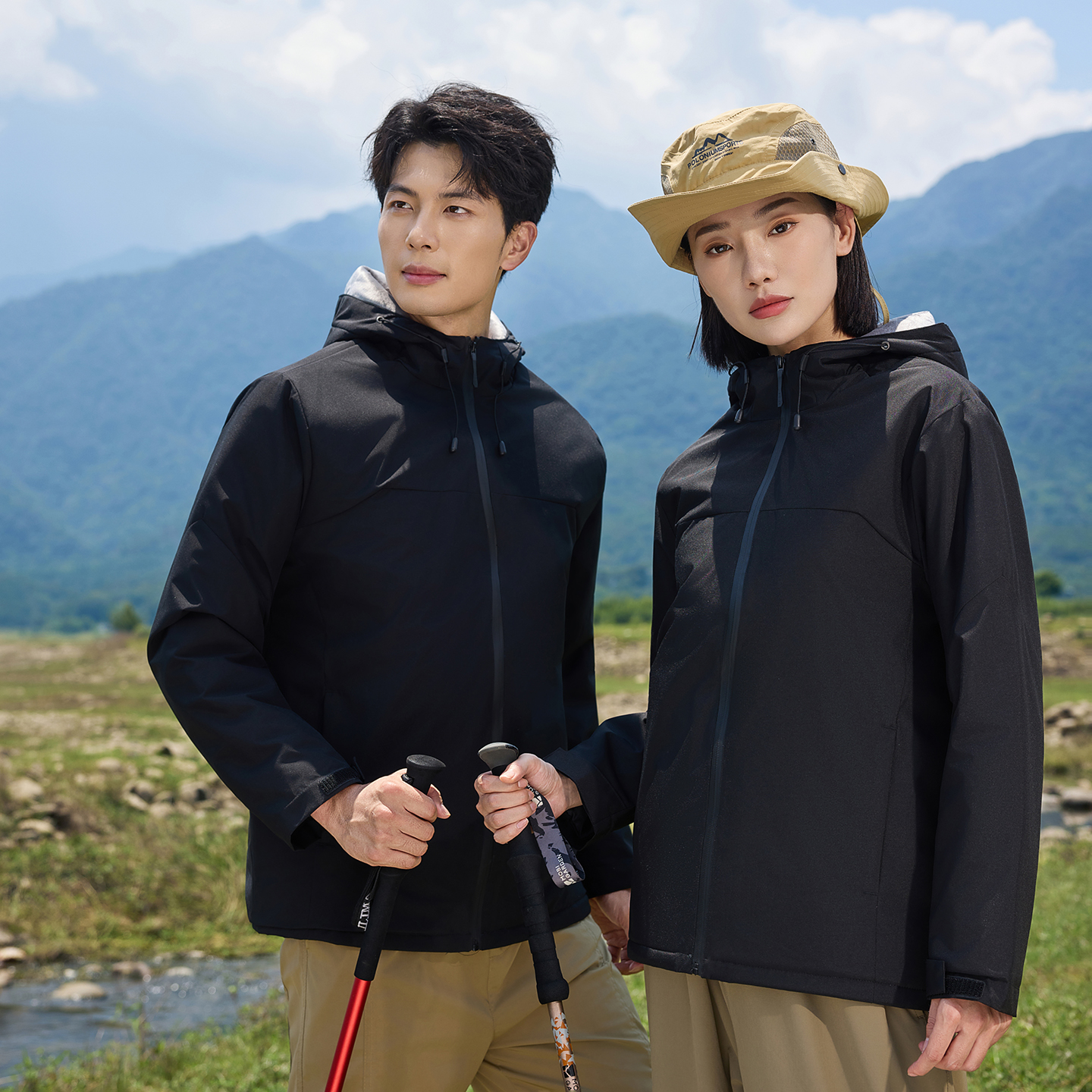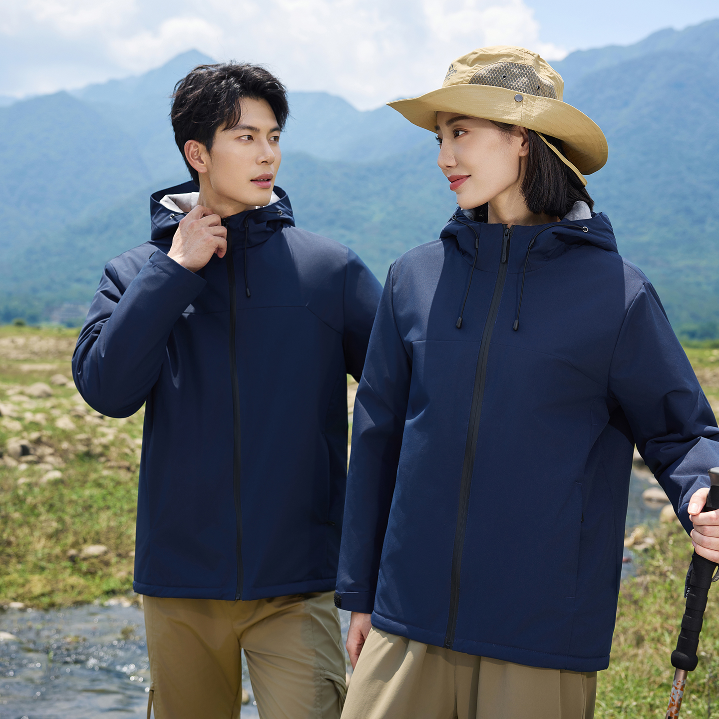冲锋衣印制logo户外露营男女情侣纯色登山服防风防水加绒加厚外套