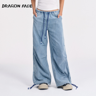 裤 美式 小个子设计感直筒阔腿工装 女夏薄款 高街辣妹vibe白色牛仔裤