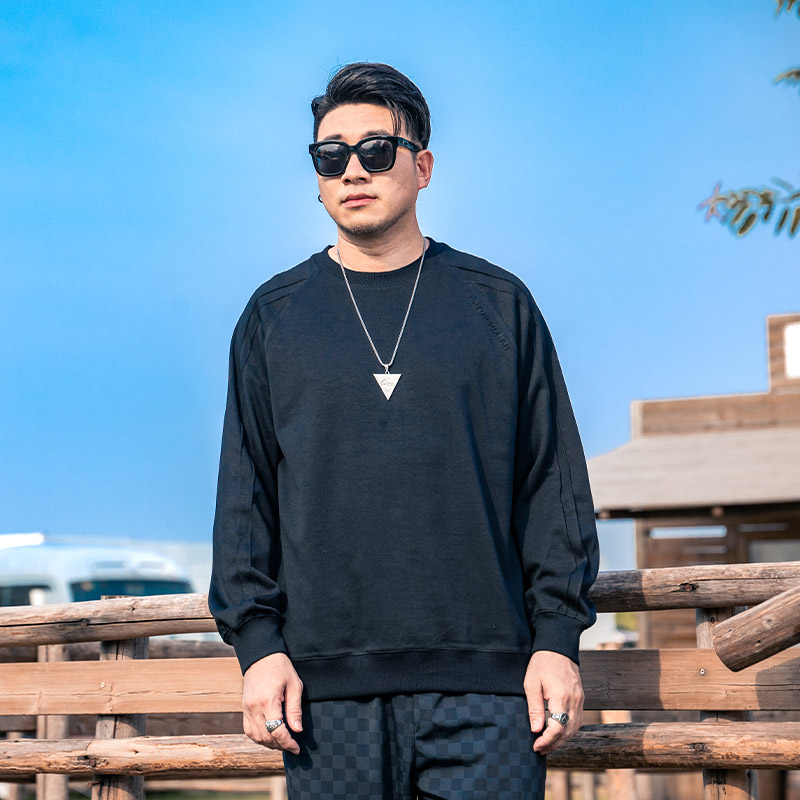 秋冬季 潮流卫衣男士 美式 纯色压花长袖 上衣 GxxH大码 圆领打底衫 男装