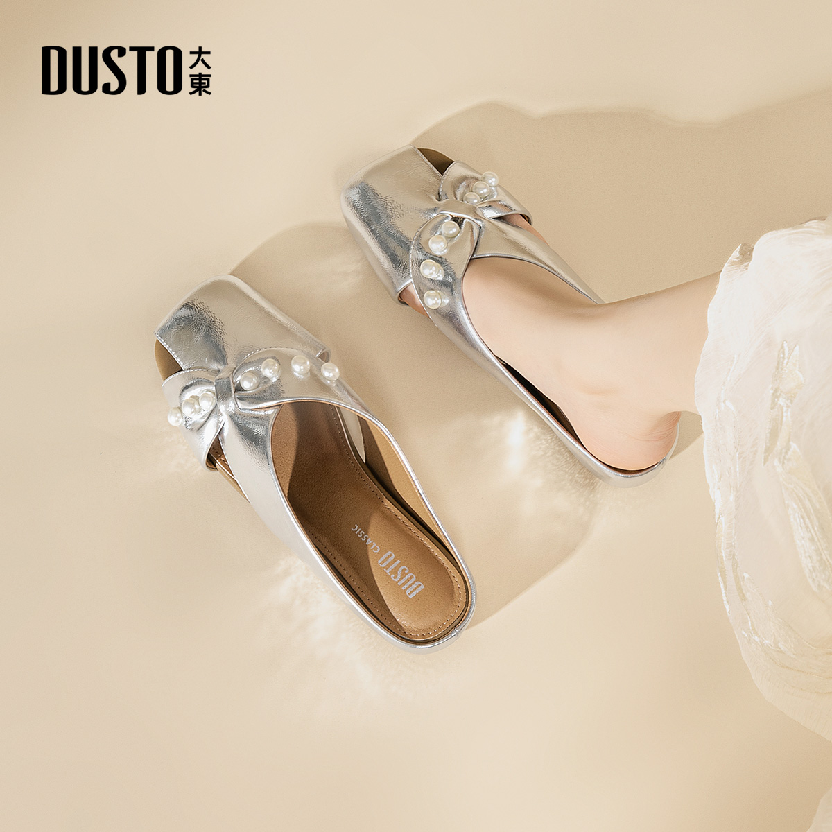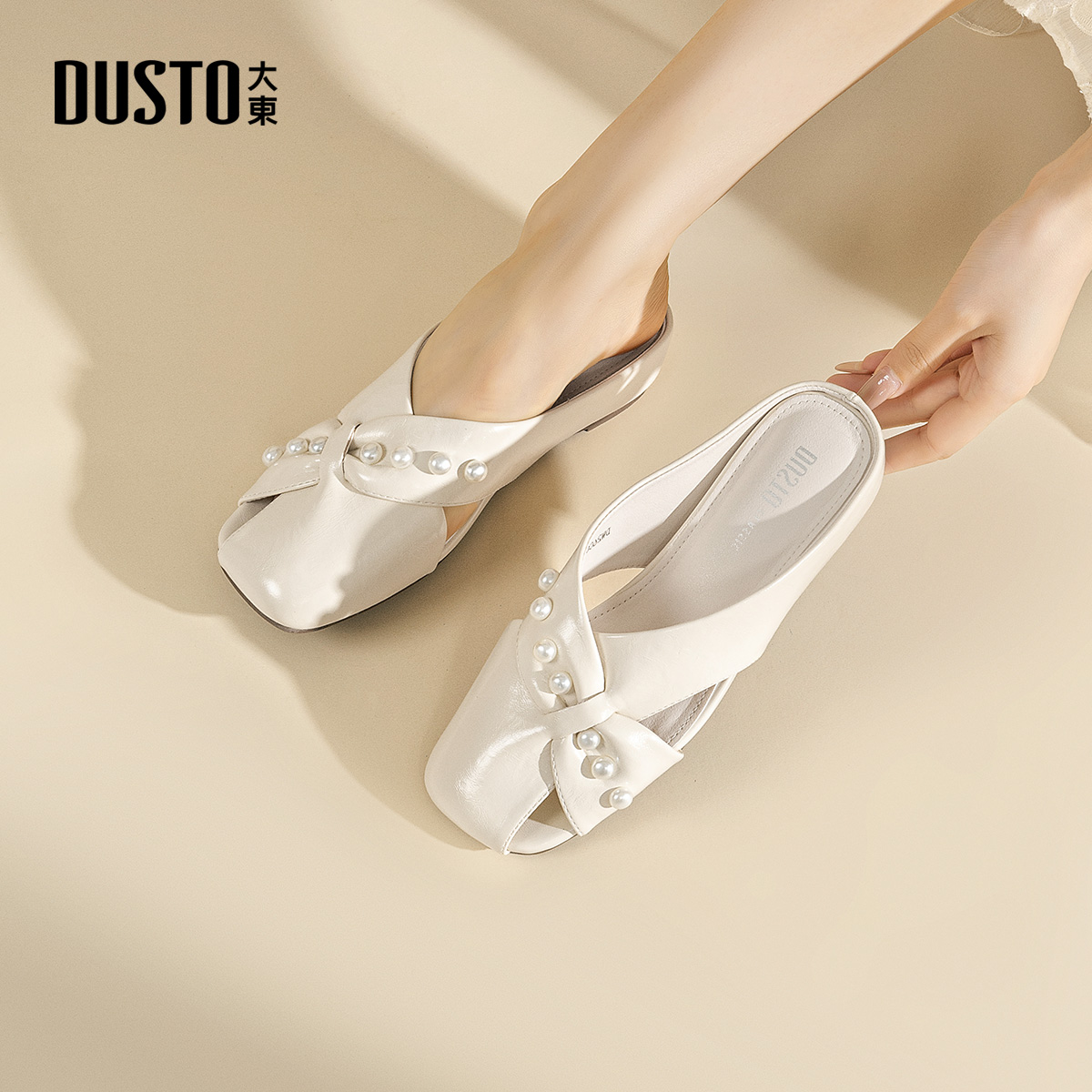 春秋甜美风外穿包头半拖平底透气珍珠拖鞋 2025新款 女鞋 大东穆勒鞋