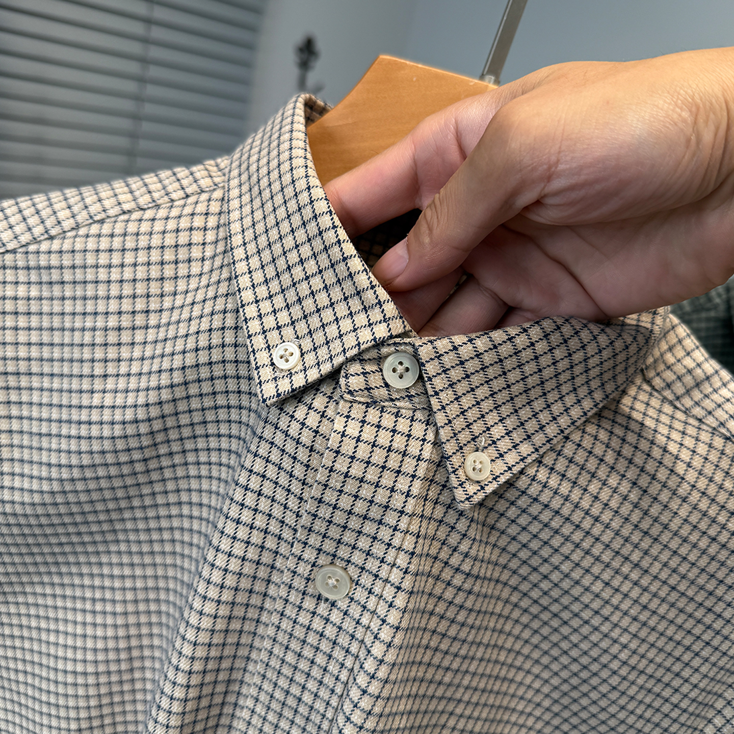 宝诗黎针织假两件格子拼接衬衫 中长休闲简约百搭宽松上衣 2025秋季
