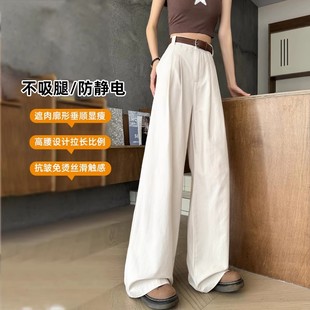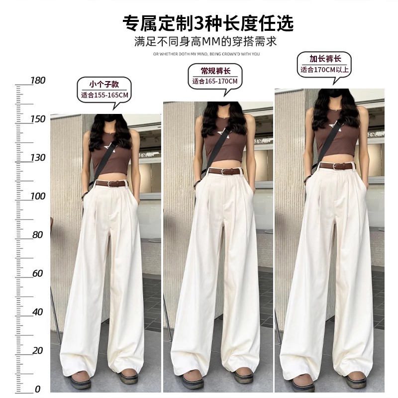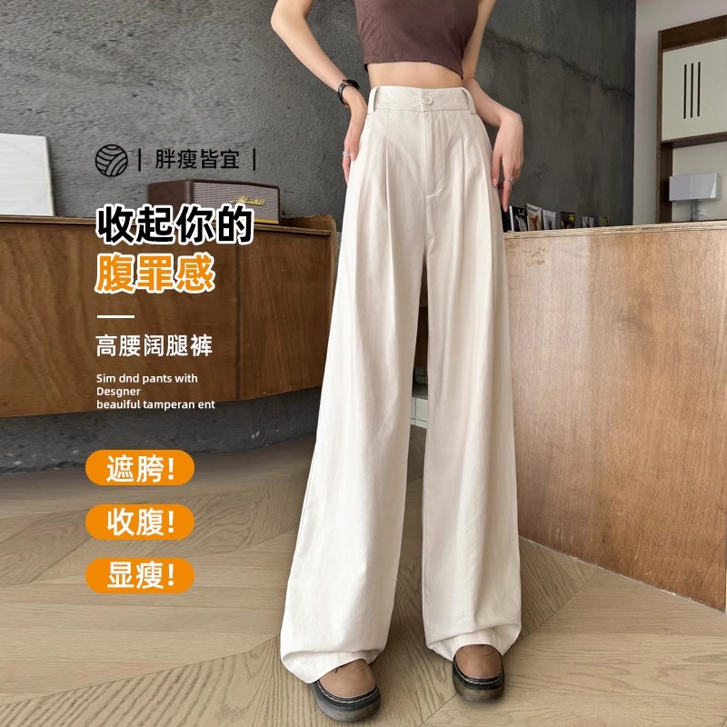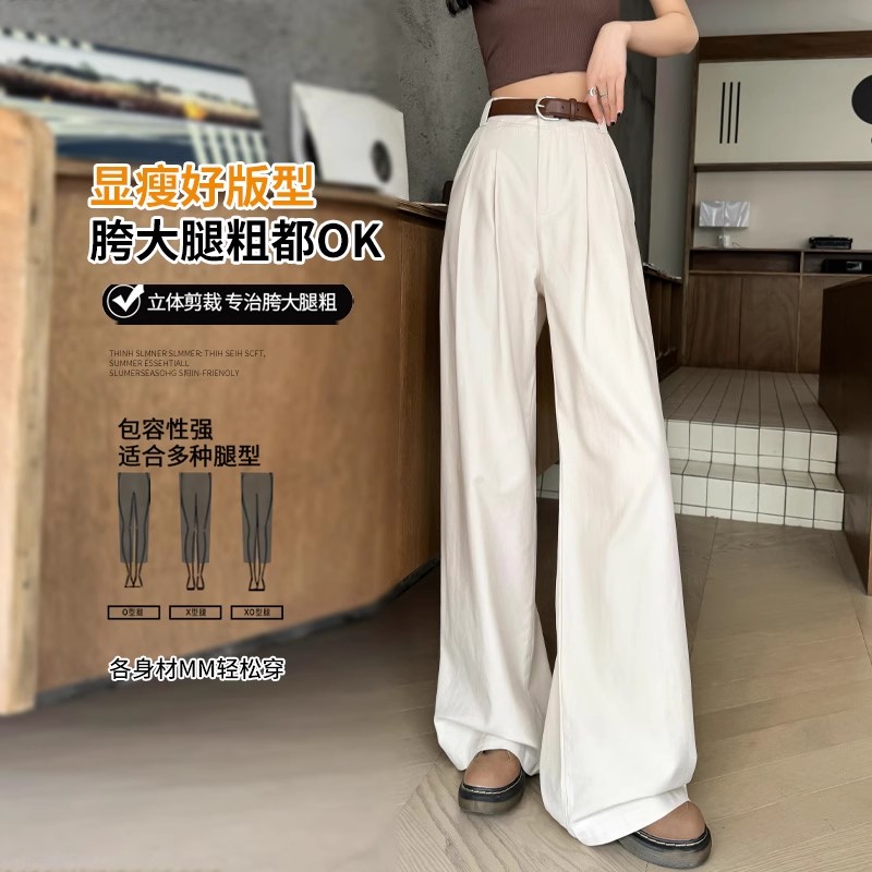 米白色天丝直筒通勤高腰宽松小高个子垂感裤 女春秋新款 阔腿裤 西装