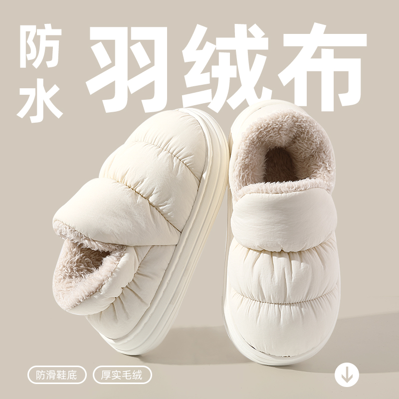 室内家居加绒保暖情侣羽绒棉鞋 2025新款 男 包跟女士冬季 防水棉拖鞋