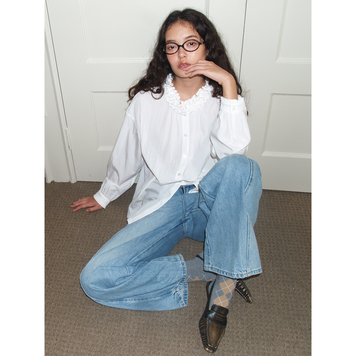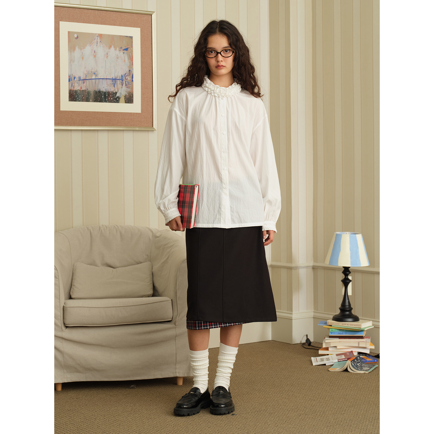 新甜美叠穿宽松衬衣上衣 2025秋季 omont蛋挞家复古花瓣领长袖 衬衫
