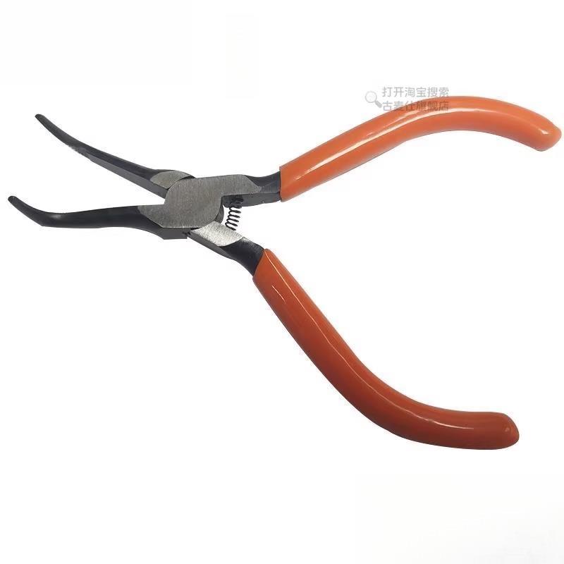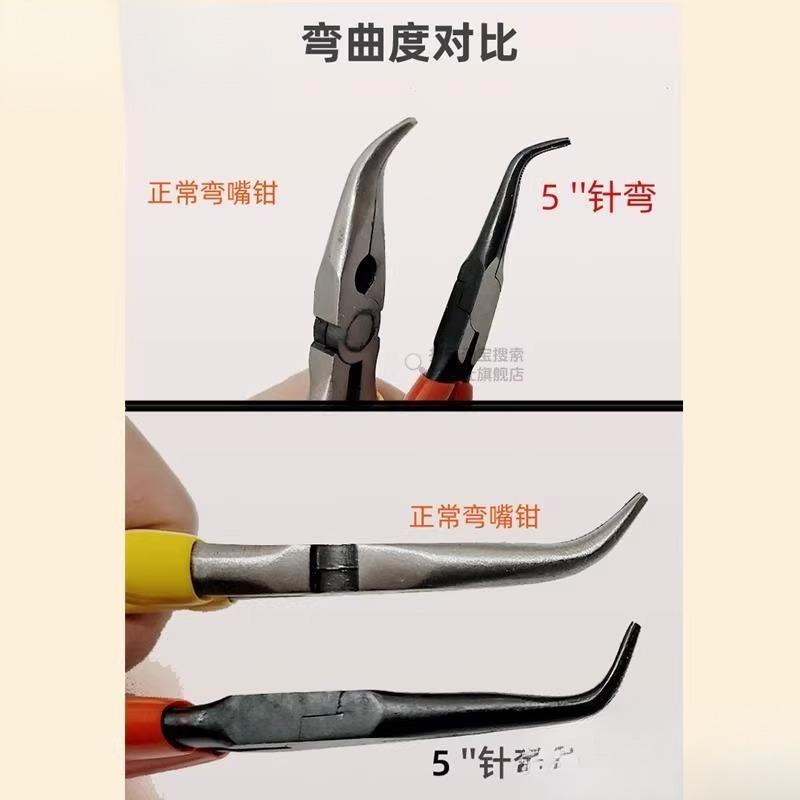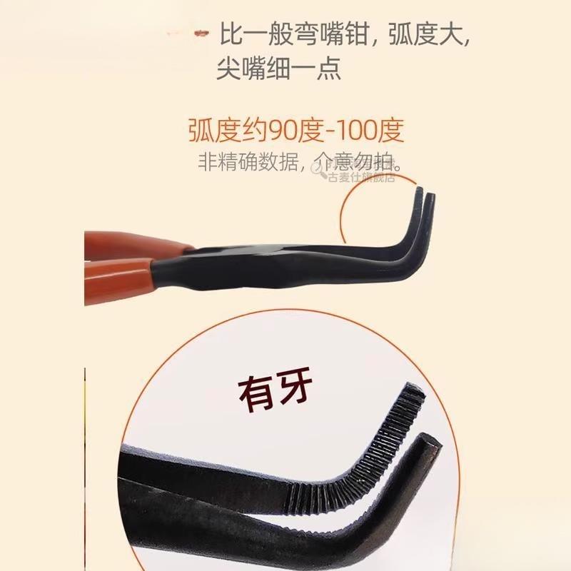 迷你5寸弯嘴钳带齿大约90度尖嘴钳子弯咀钳弯头尖嘴钳弯口约90&am