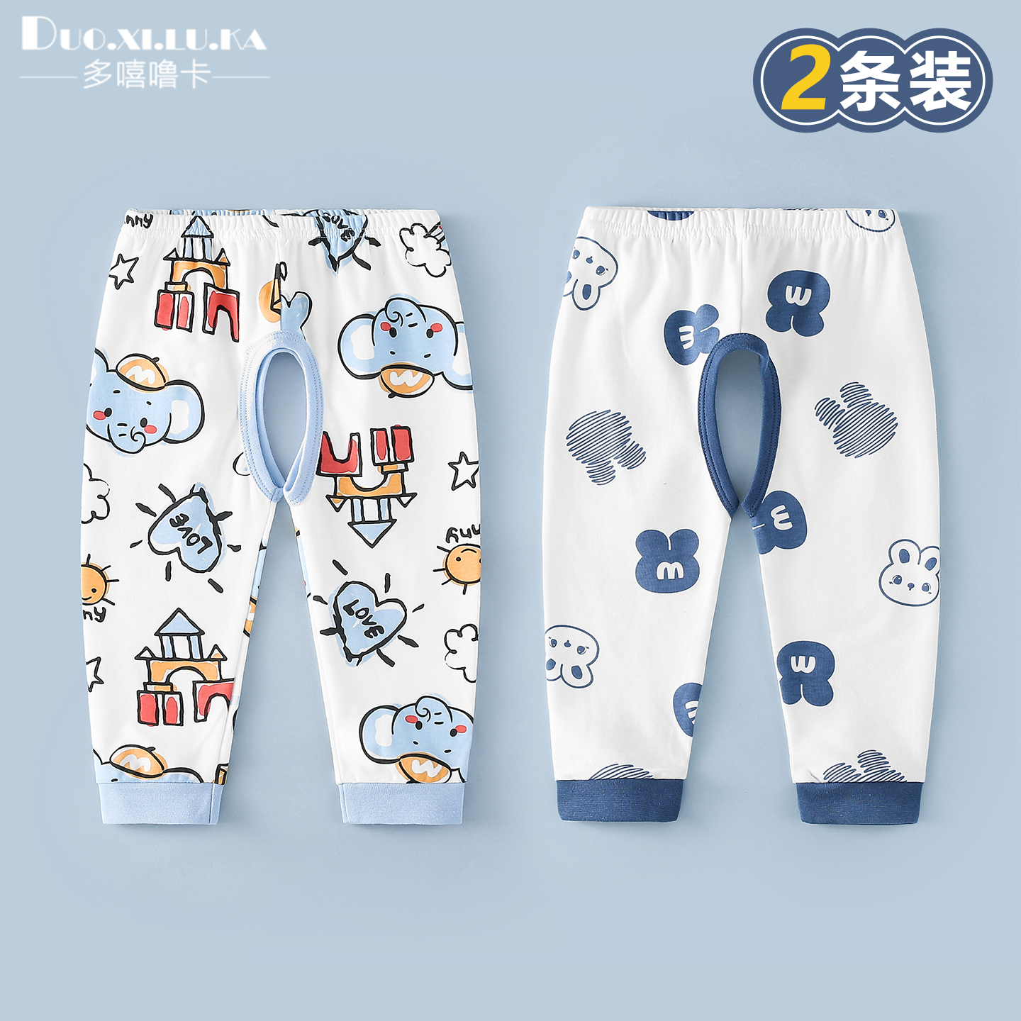 新款 春秋季 纯棉A类男女宝宝裤 子长裤 2件 家居睡裤 儿童开裆裤