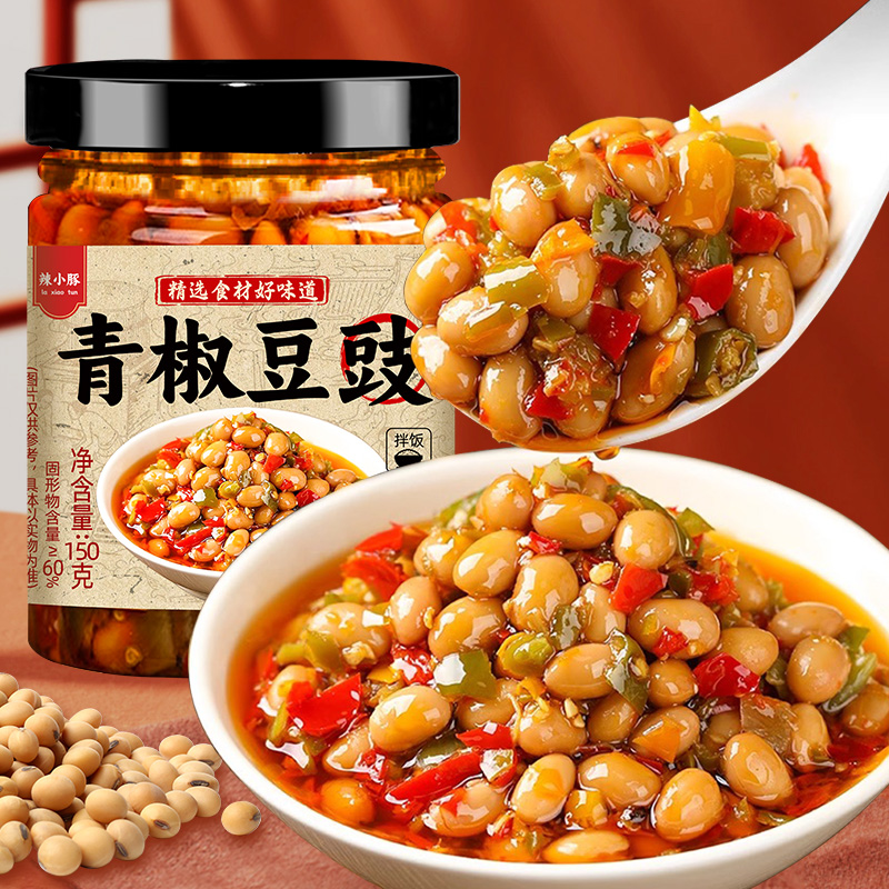 辣小豚青椒豆豉酱拌面酱香辣豆豉下饭菜即食佐餐炒菜拌饭酱辣椒酱