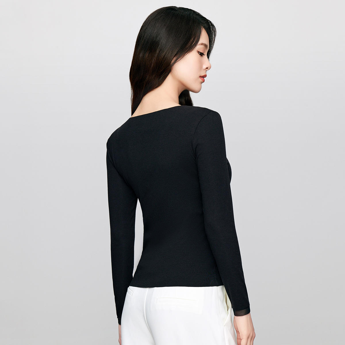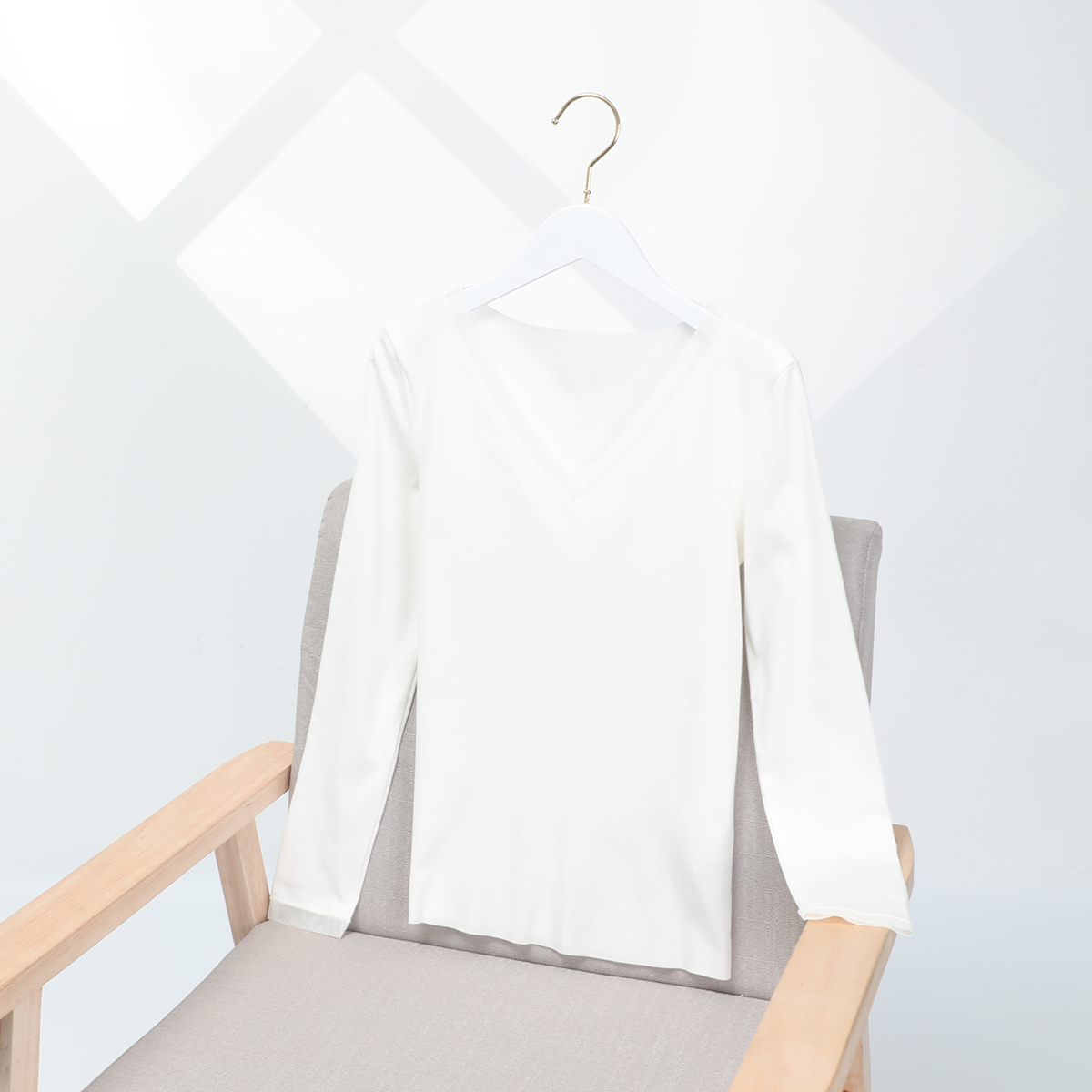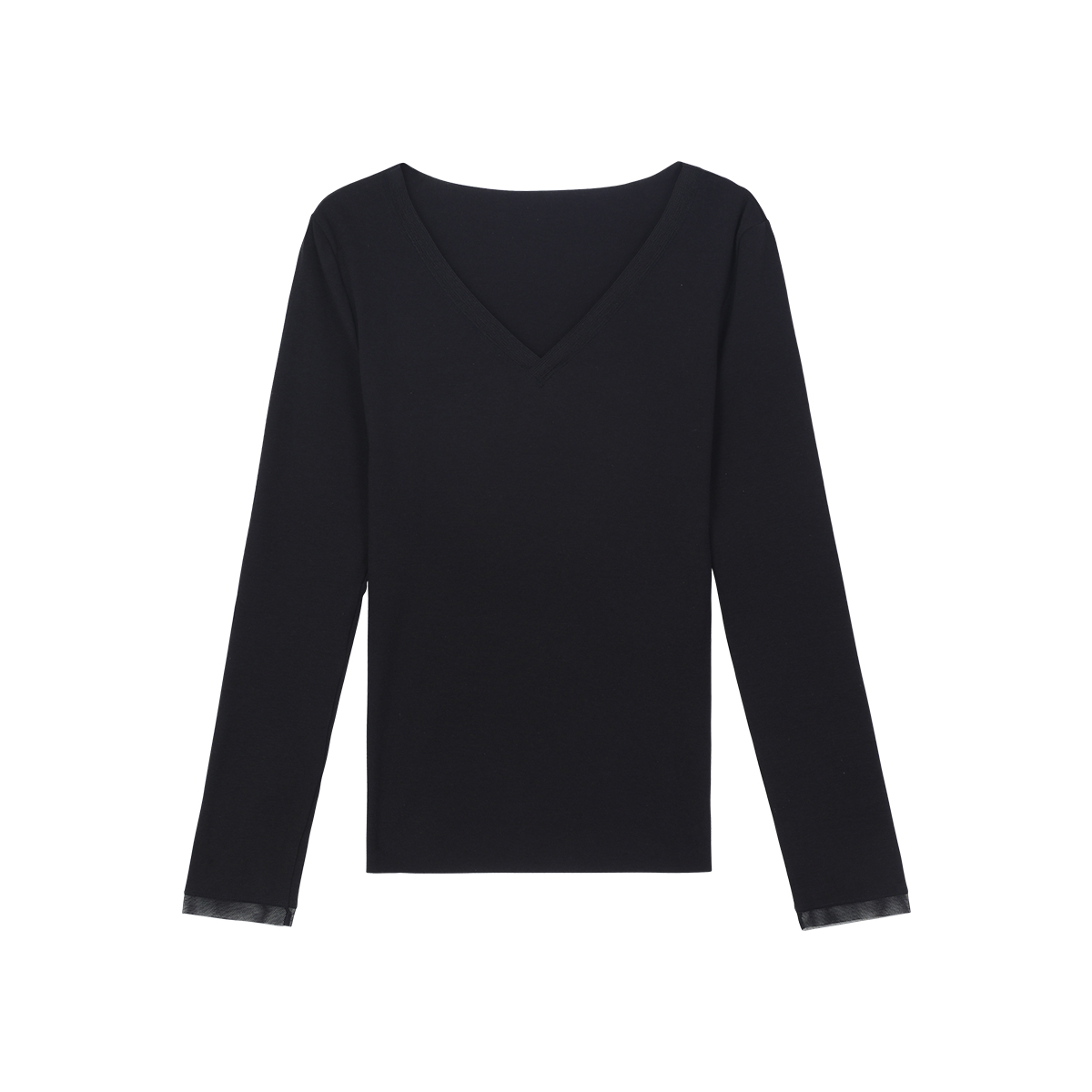 棉毛衫 简约无痕打底衫 暖衣V领上衣女 BRA秋冬薄款 安莉芳官方奥莱E