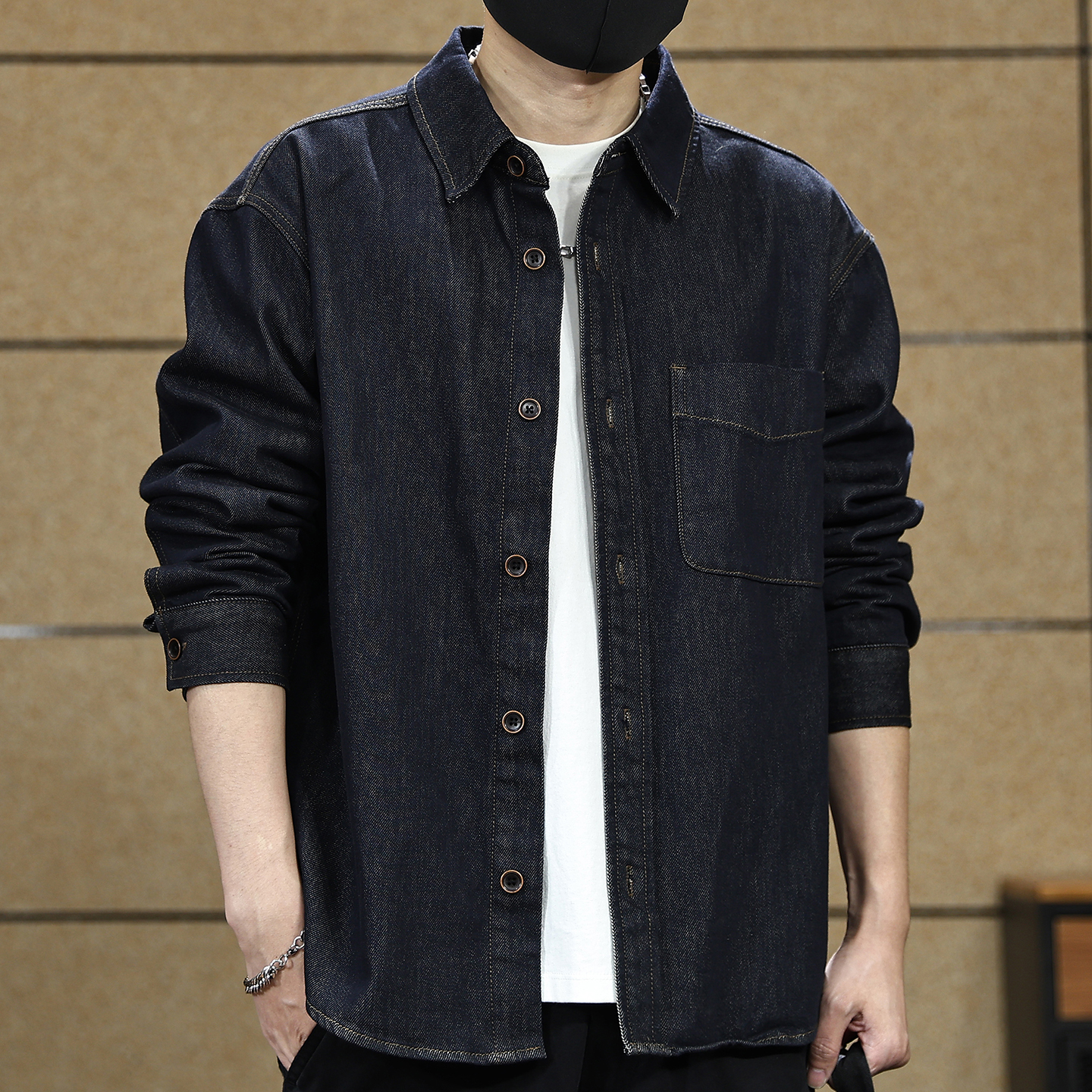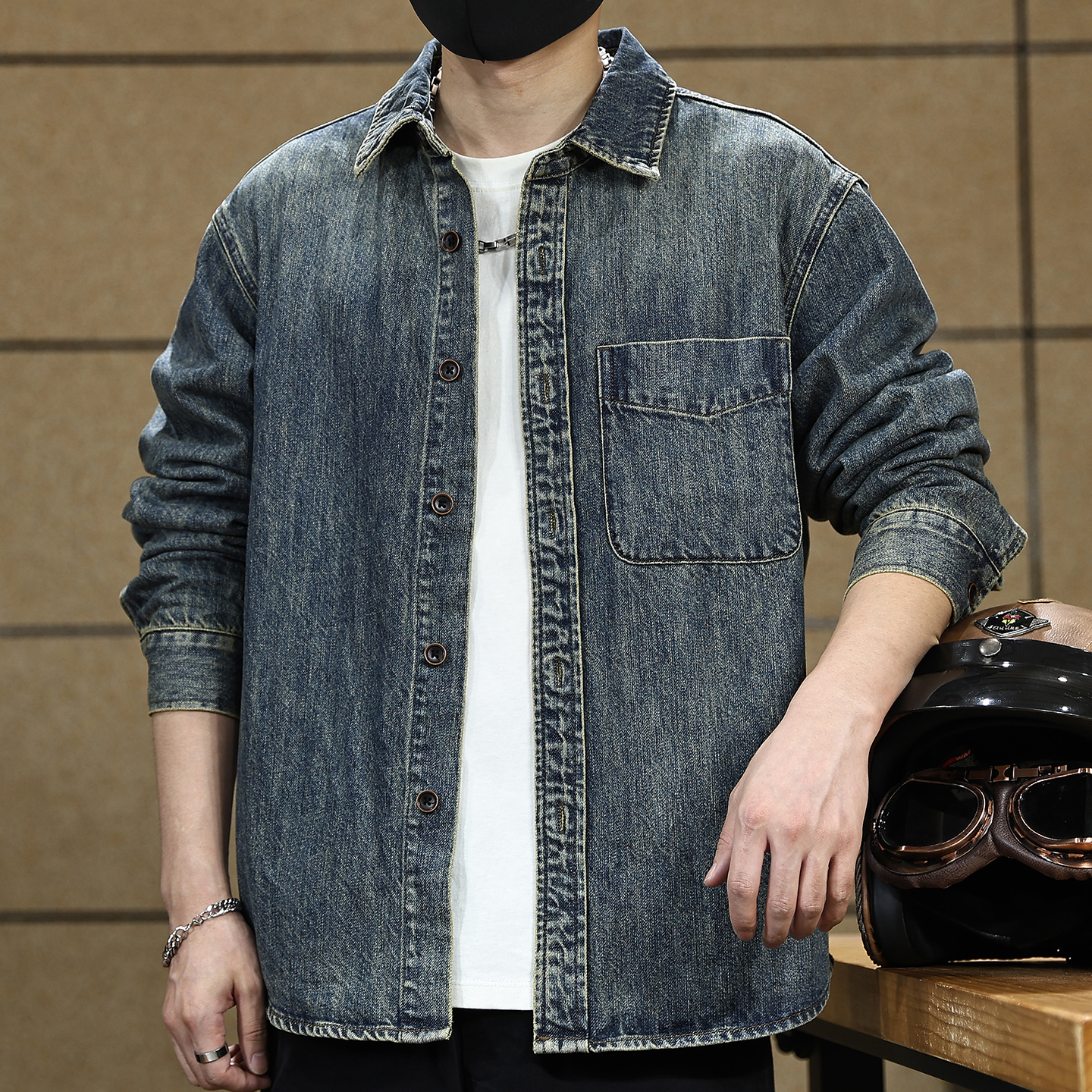 外套秋冬款 复古水洗牛仔男士 长袖 衬衫 美式 宽松潮牌夹克男秋季 工装