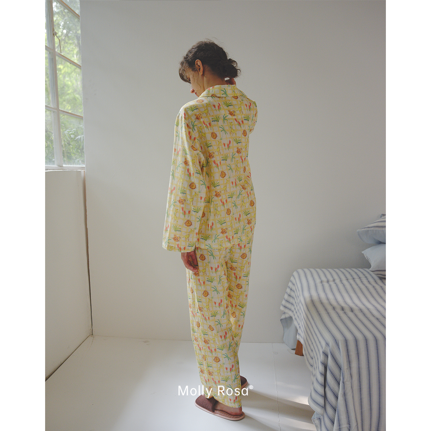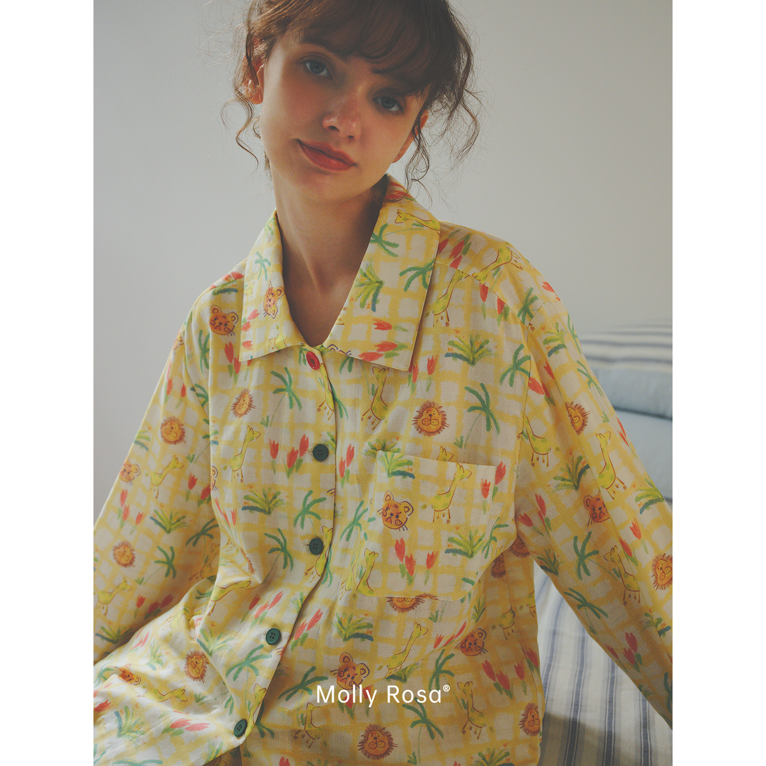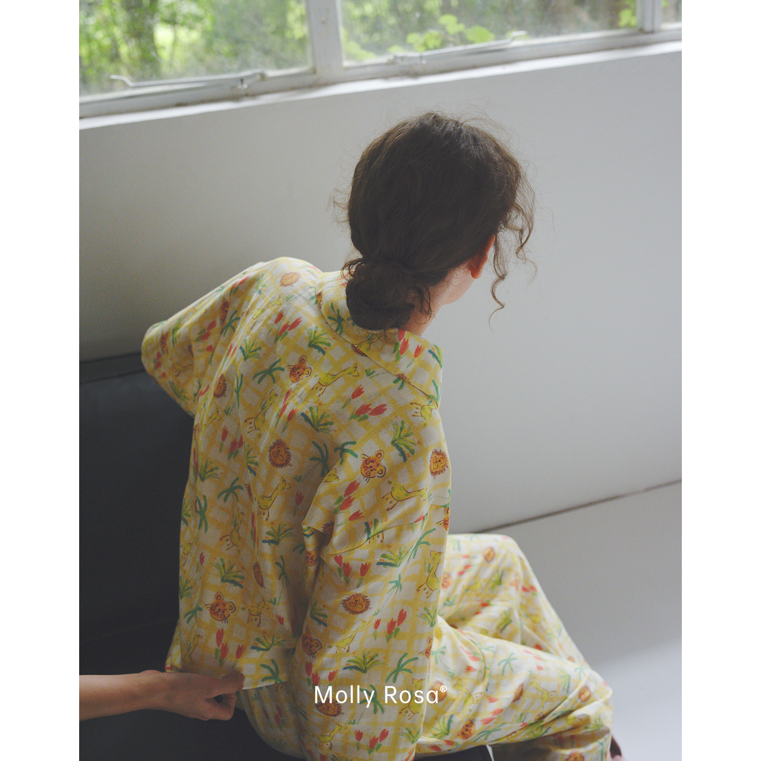 秋季 MollyRosa格子布丁动物 睡衣套装 长裤 家居服新 纯棉双层纱长袖