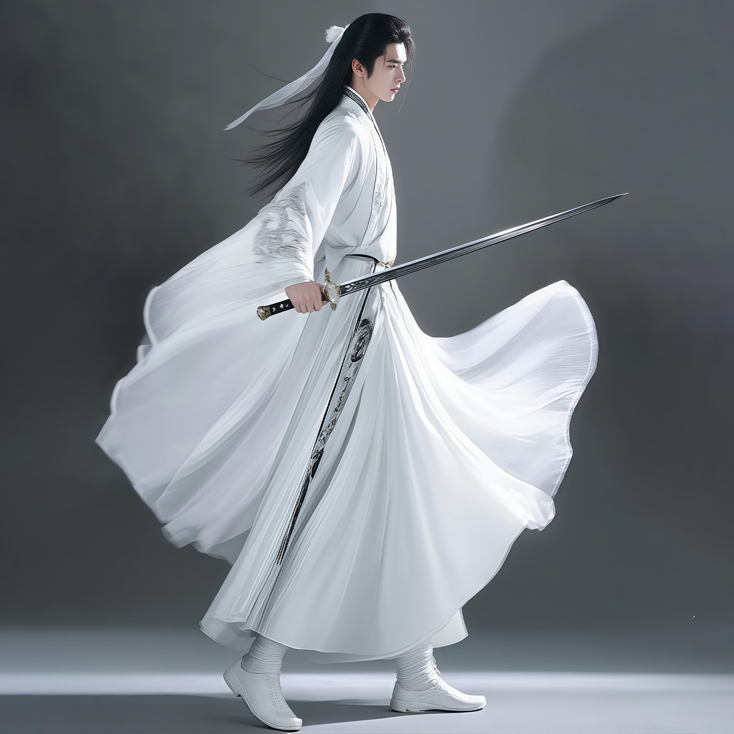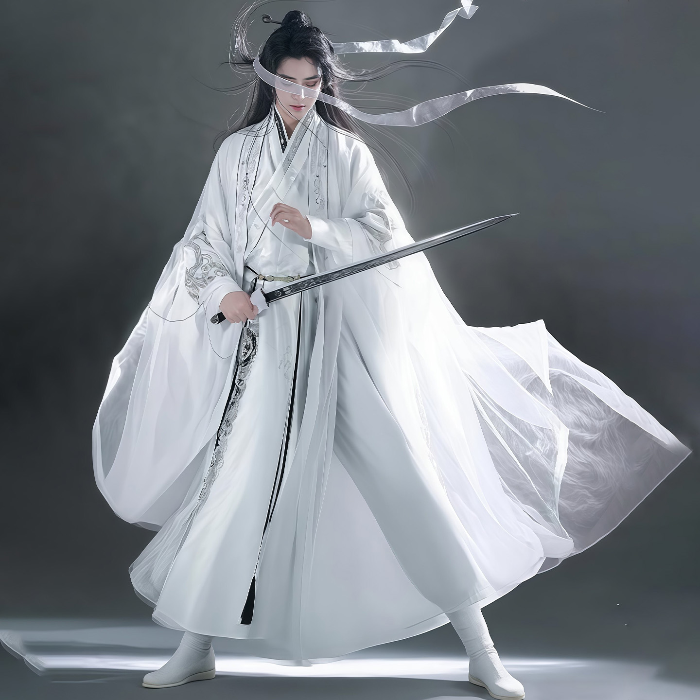飘逸魏晋风齐腰交领襦裙 衫 汉服男白色国风刺绣汉服改良汉元 素大袖