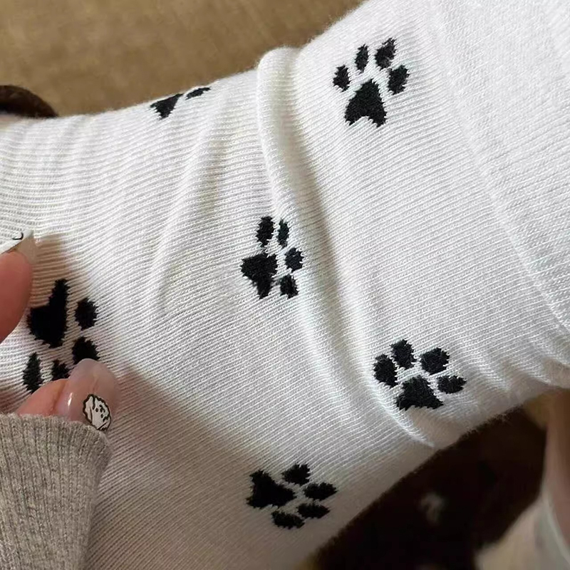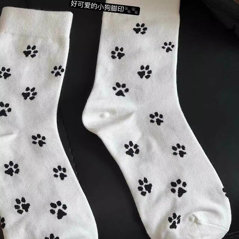 袜子女中筒袜春秋纯棉可爱狗爪ins潮韩版 运动长袜月子袜甜美白色