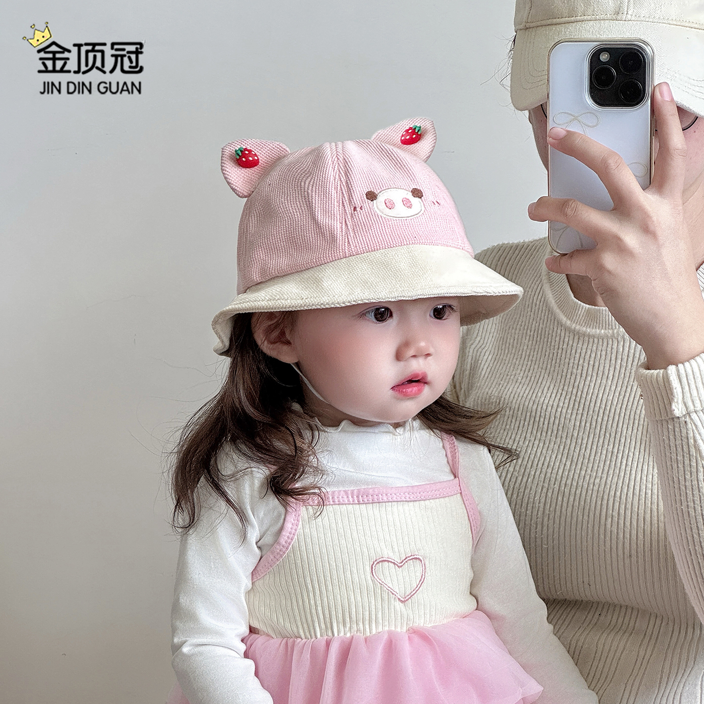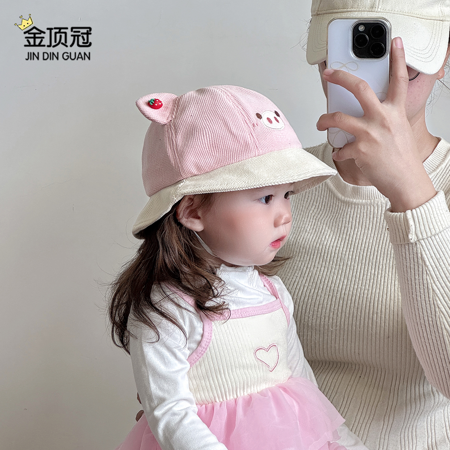 宝宝帽子秋冬季 蝴蝶结盆帽儿童秋天出游遮阳帽可爱 渔夫帽可爱韩版