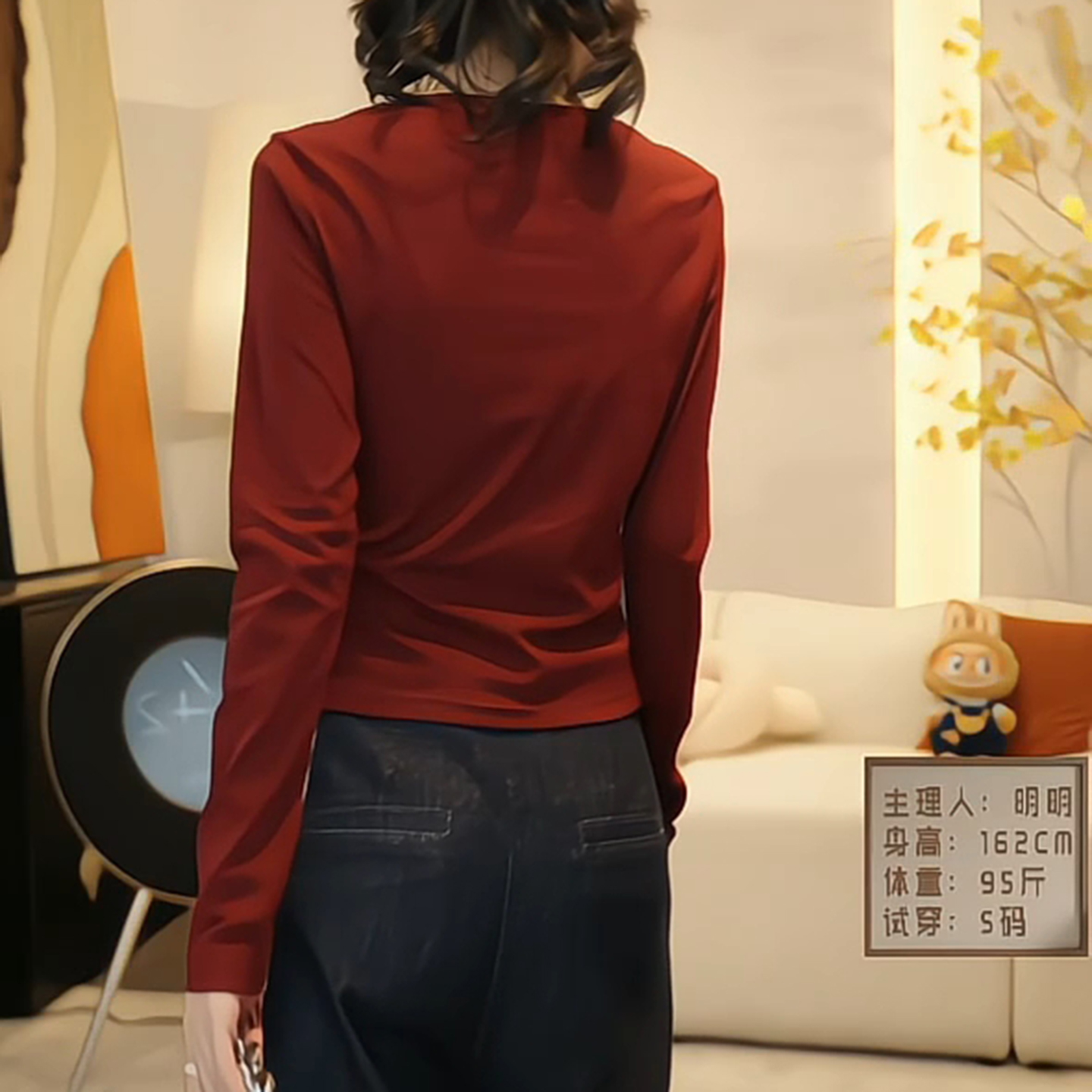 显瘦针织上衣 字母印花修身 设计感撞色掐腰长袖 T恤女2025早秋新款