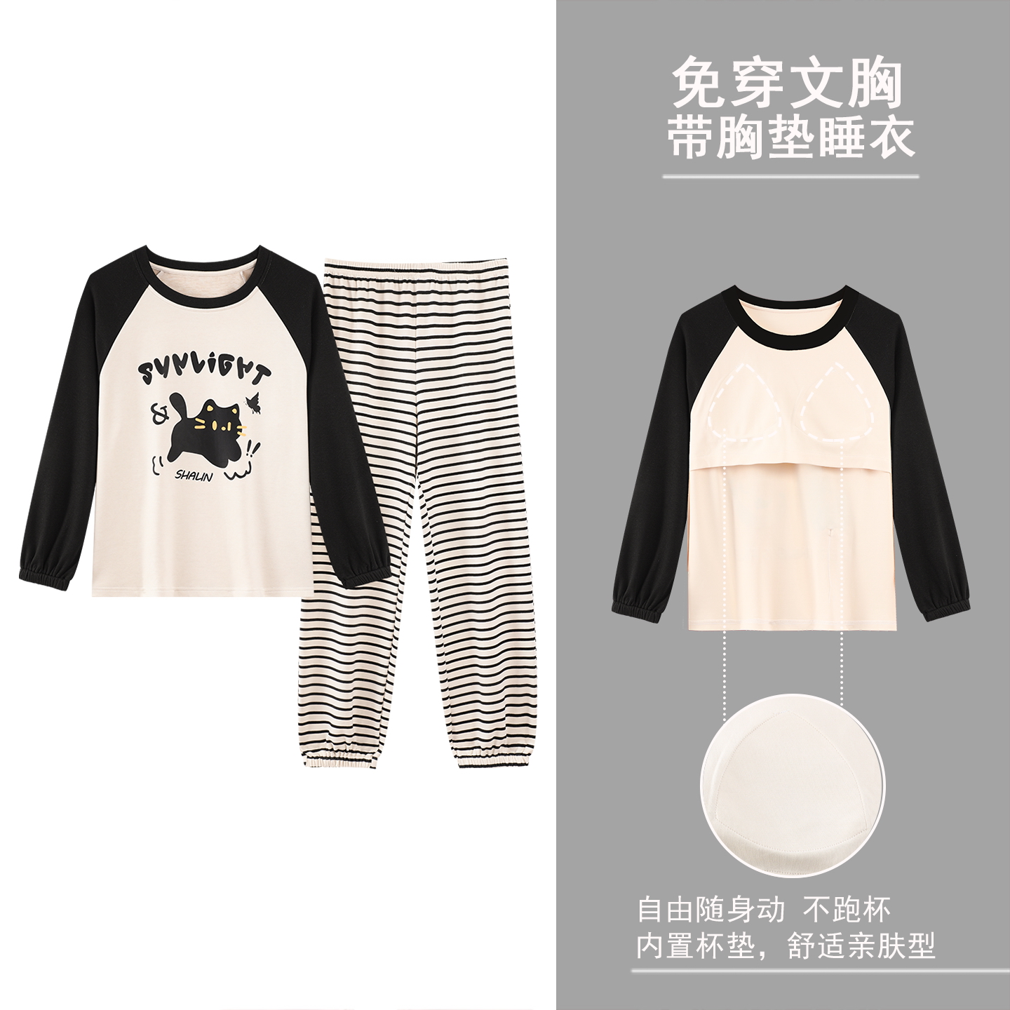 巨柔软 条纹长袖 睡衣女春秋季 纯棉套装 家居服 2025年新款 安之伴