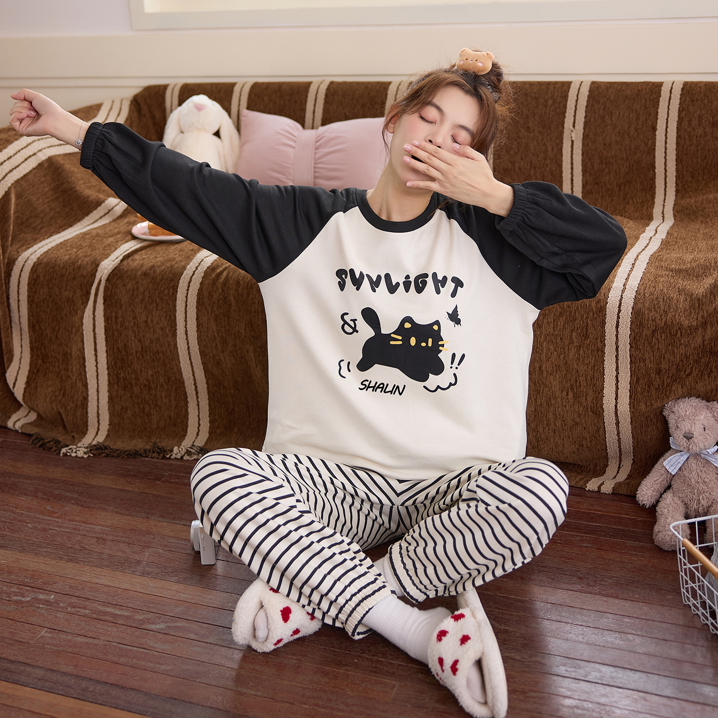 女士可爱卡通全棉家居服套装 睡衣女春秋季 2025新款 长裤 纯棉长袖