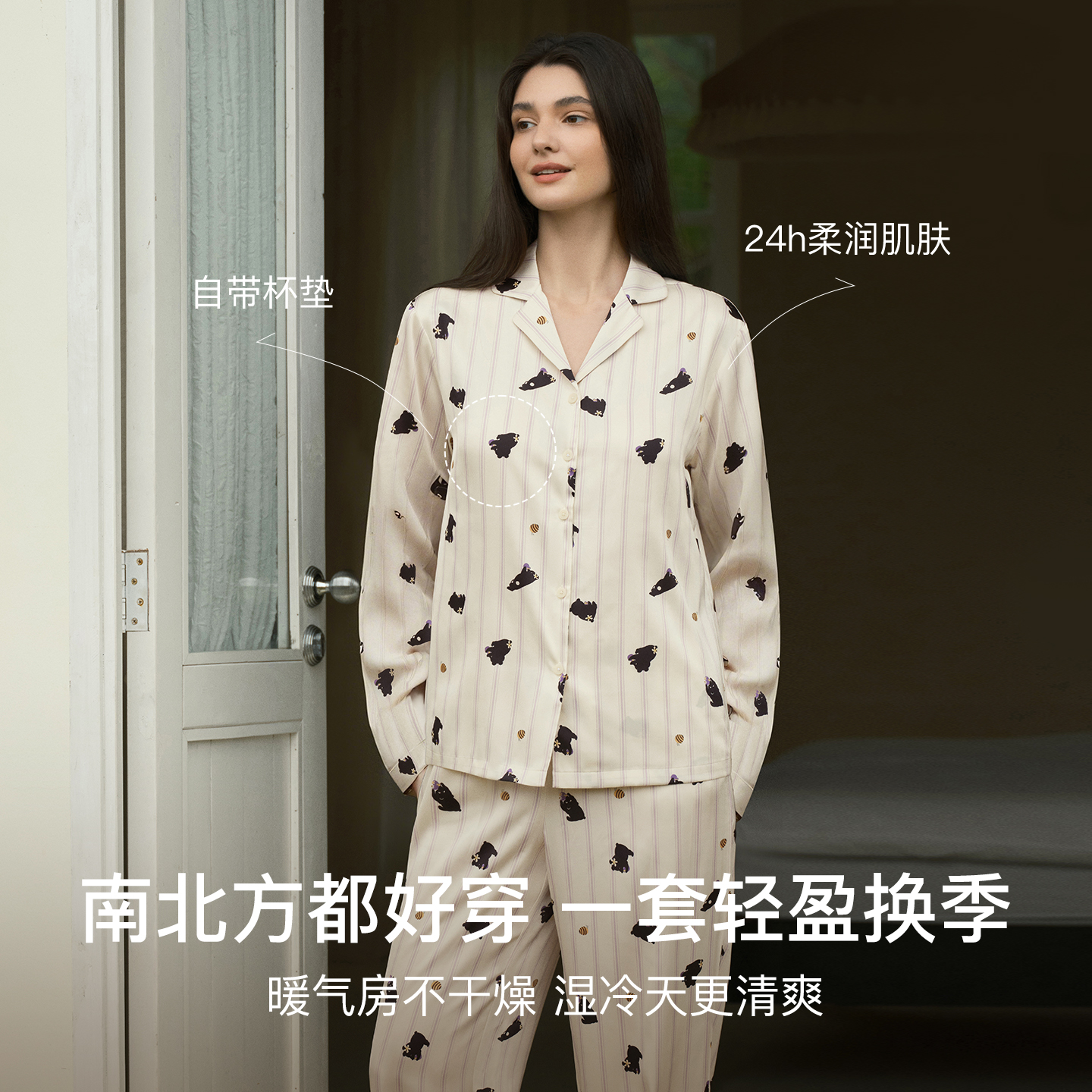 带胸垫可外穿2025年新款 情侣长袖 秋 睡衣男士 ubras流光家居服女款