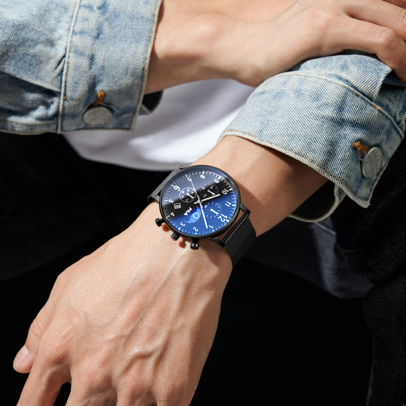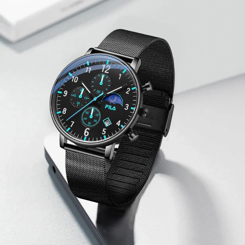 FILA斐乐三眼多功能编织米兰钢带手表夜光指针腕表时尚 男表新6743