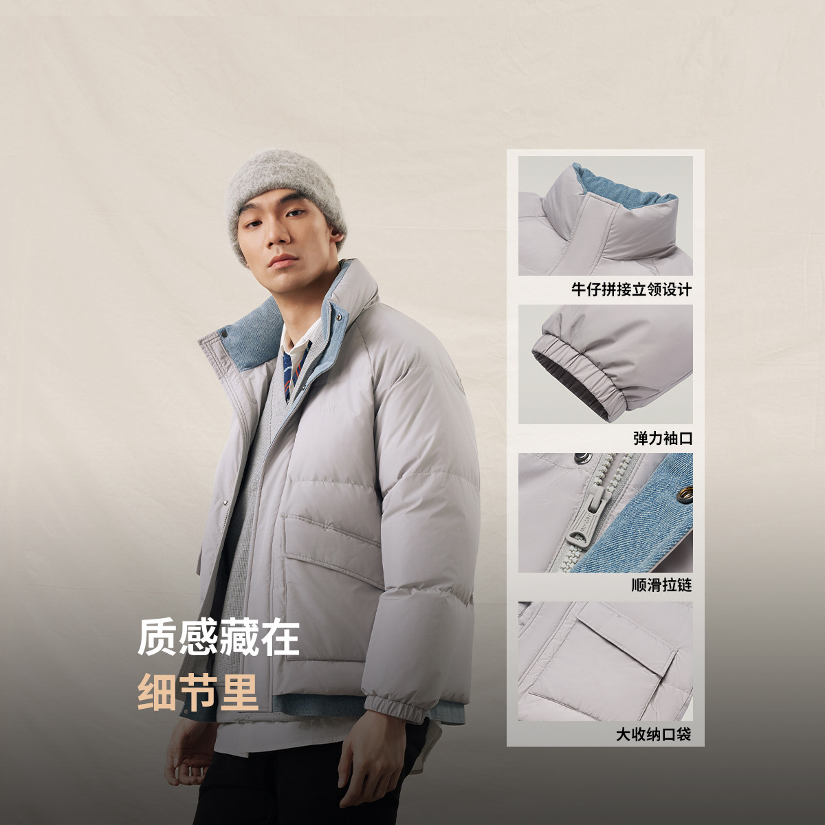 连帽羽绒服冬面包服防寒短款 太平鸟男装 排骨外套 95%进口鸭绒