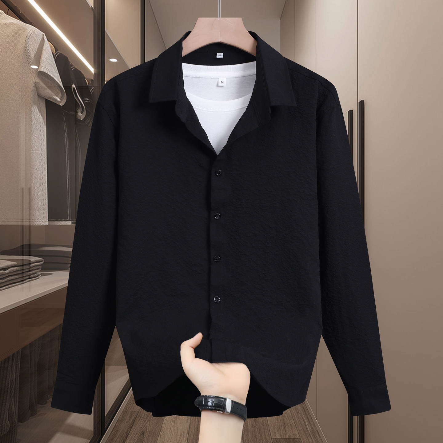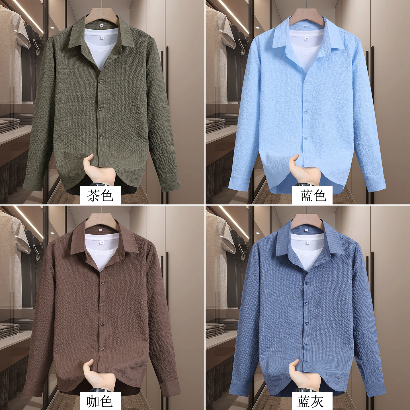 薄款 男2025秋装 净版 休闲商务正装 上衣 纯色长袖 肌理感抗皱修身 衬衫