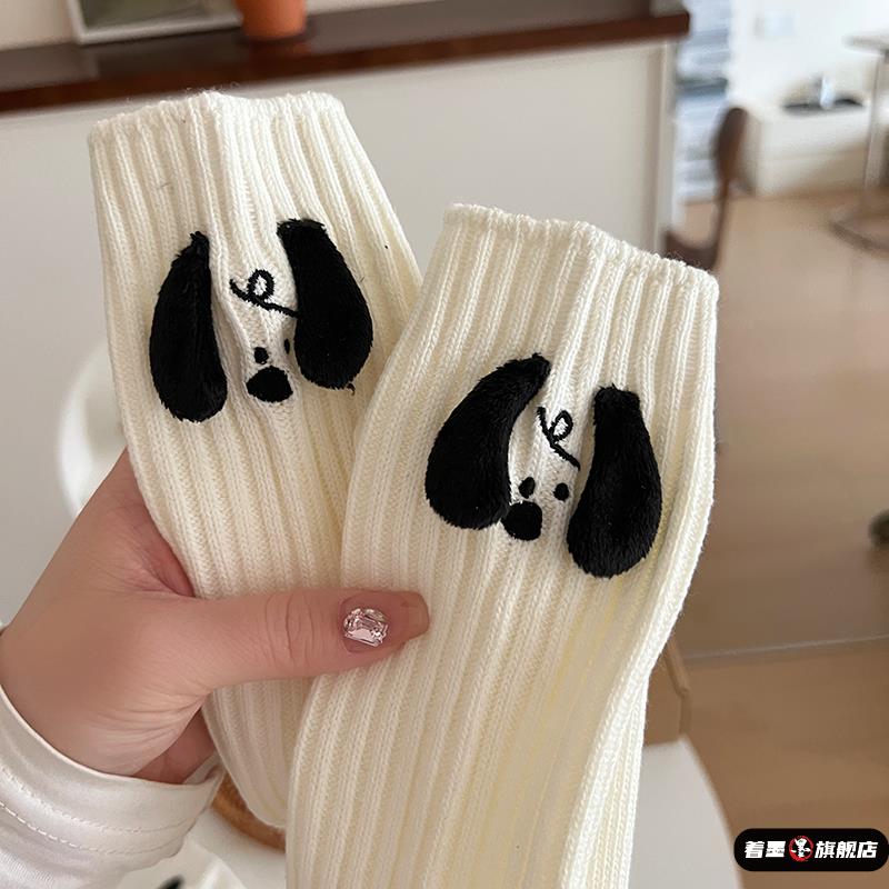 长筒袜冬季 搞怪袜子女纯棉中筒袜白色可爱小狗个性 ins潮春秋款