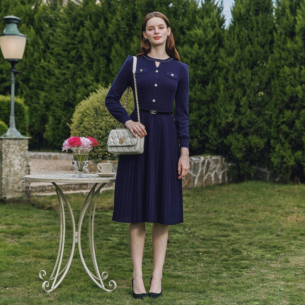 假两件优雅气质收腰连衣裙 珂莱蒂尔2025秋新法式 免定金