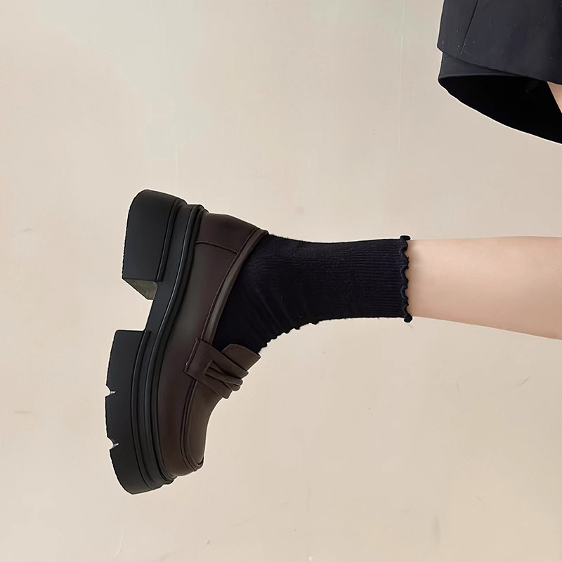 爆款 增高女鞋 英伦风小皮鞋 厚底乐福鞋 黑色单鞋 子2025新款 女款 女鞋