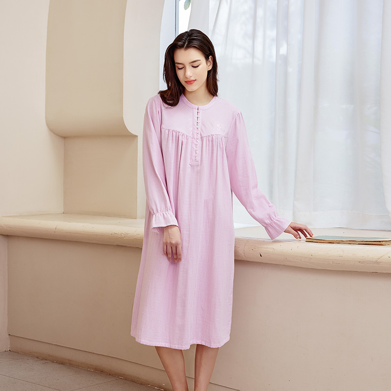 睡裙梭织纯棉纱宽松家居服全棉 女士长袖 美标官方旗舰店春秋季 新品