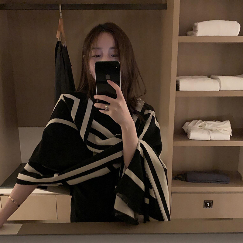 韩版 办公室保暖几何高级感双面两用围巾 黑白空调房披肩女外搭新款