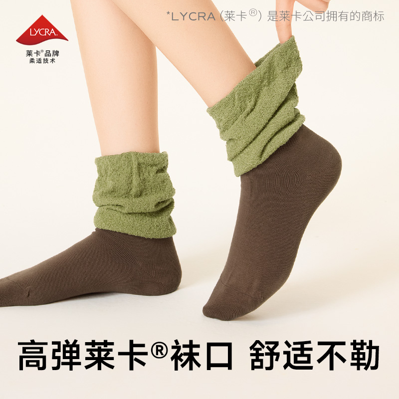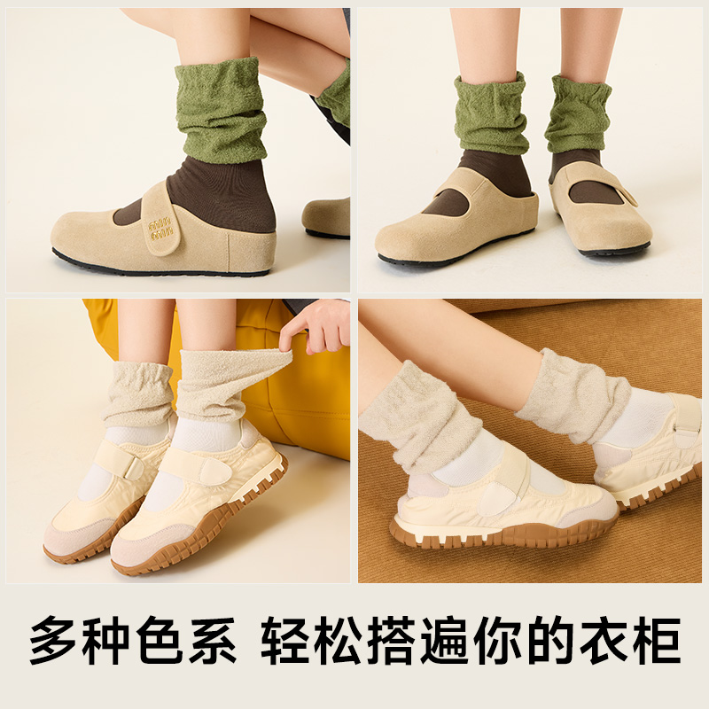 配小皮鞋 堆堆袜子女款 爆款 纯棉2025新款 白色拼接袜套无骨 春秋季