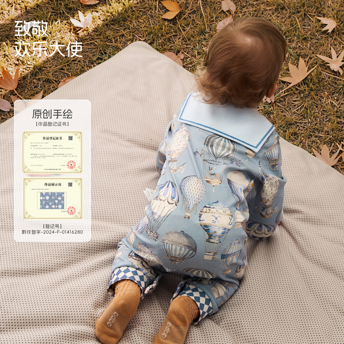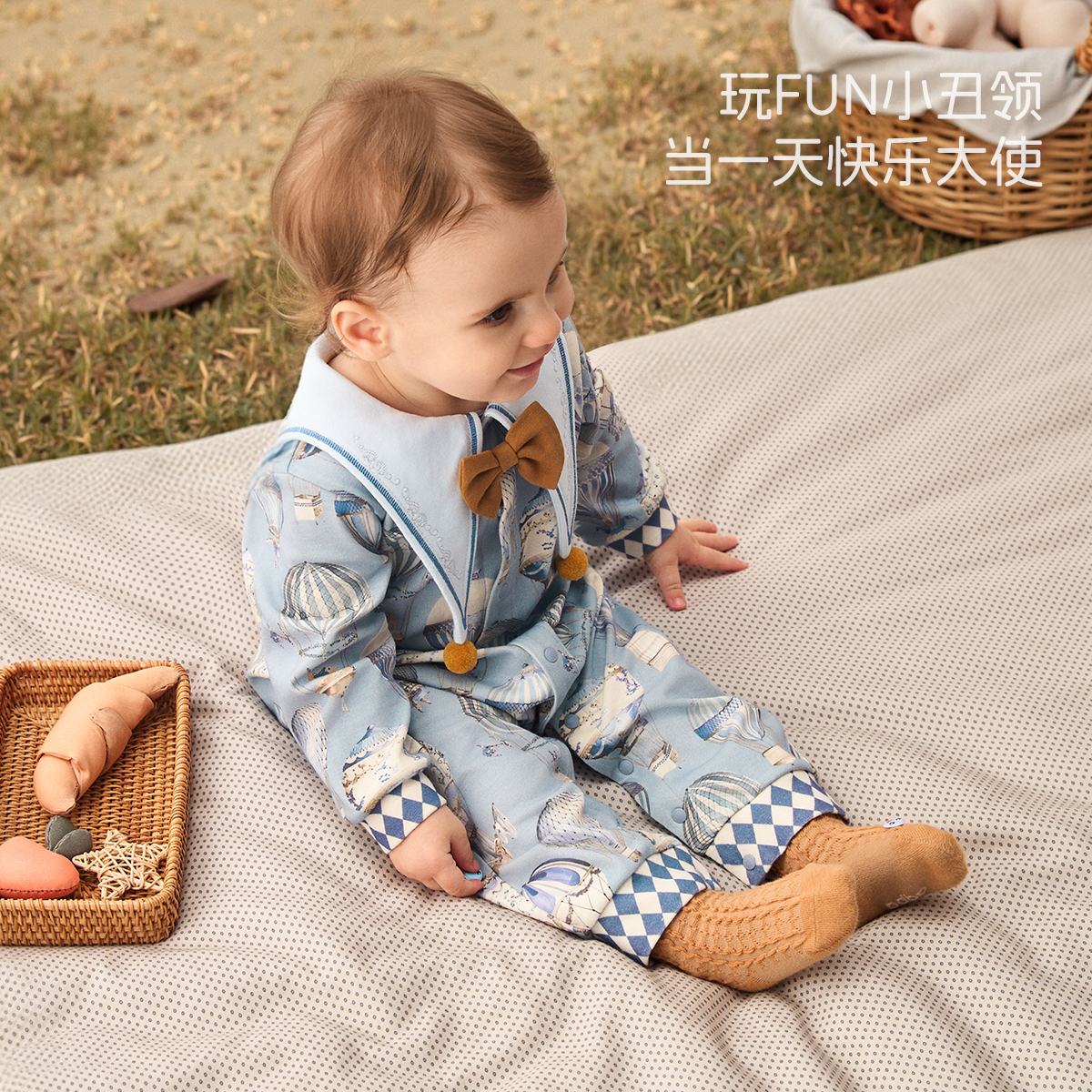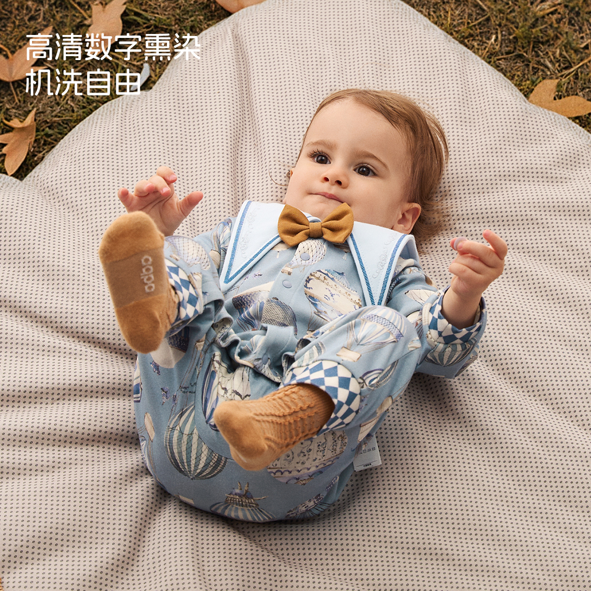 璀璨蓝宝石aqpa爱帕婴儿长袖 前开连体衣纯棉哈衣爬服秋冬