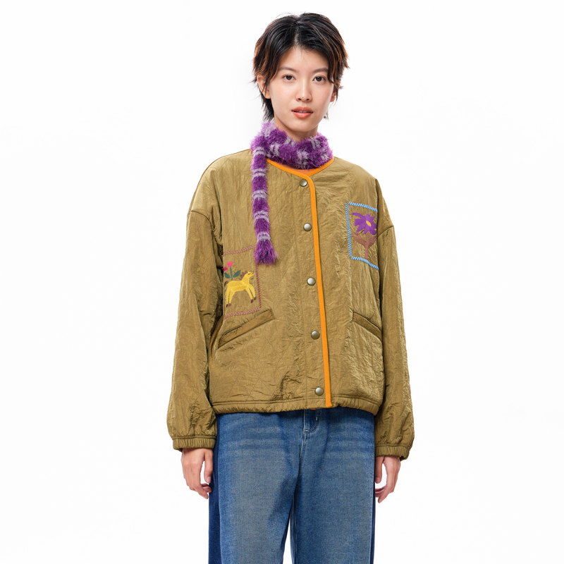 外套女 .FUN系列彩点抽绳趣味绣花织带短款 MOVEUP幻走2025冬季 新款