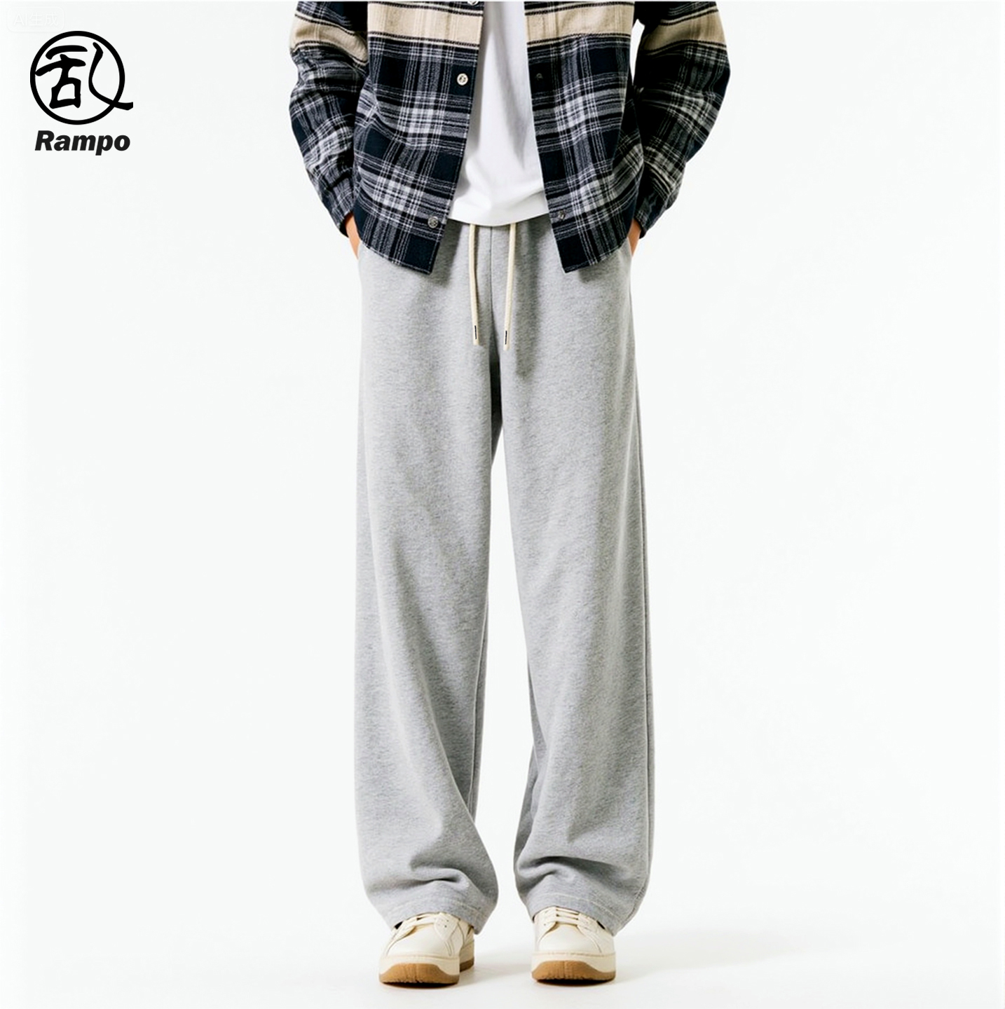 加绒街舞穿搭褶皱宽松休闲长裤 女秋冬季 子 灰色运动卫裤 自然涩美式