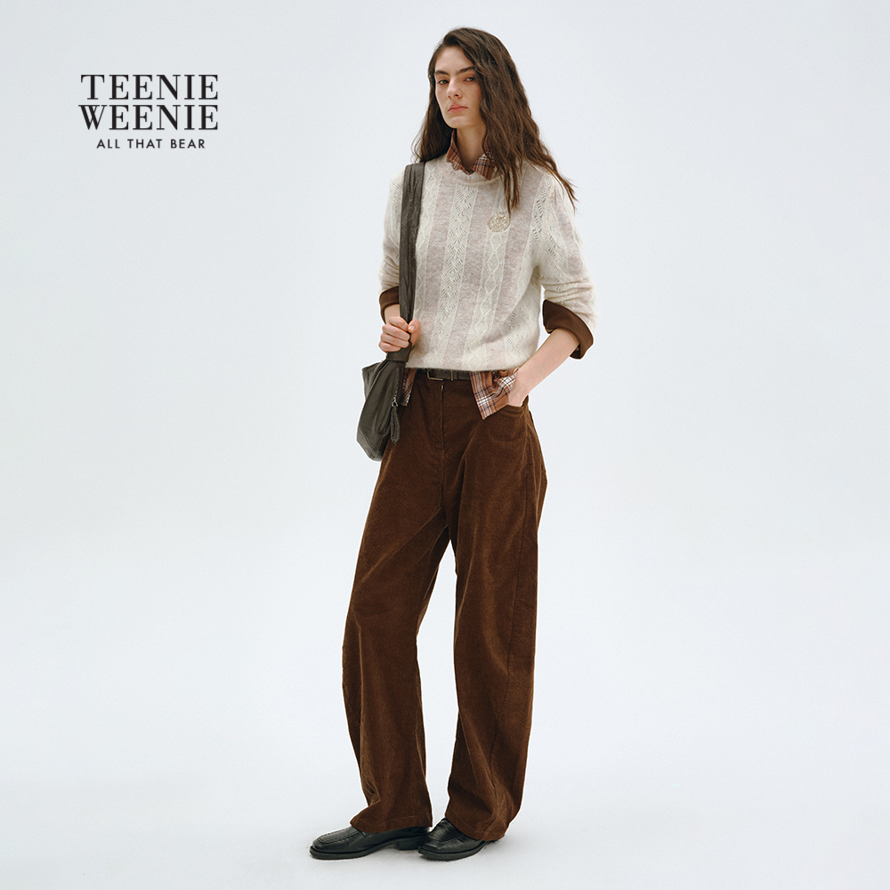竖条纹肌理感圆领毛衣 2025秋冬新款 TeenieWeenie小熊女装 毛针织衫